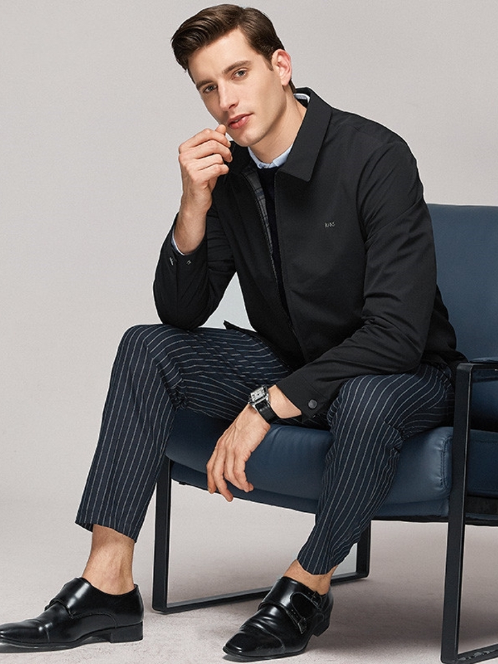 对于成功男士的我来说,穿着这款就搭配休闲裤也能毫无悬念的带出轻奢感,帅气又展现着酷帅范儿。
