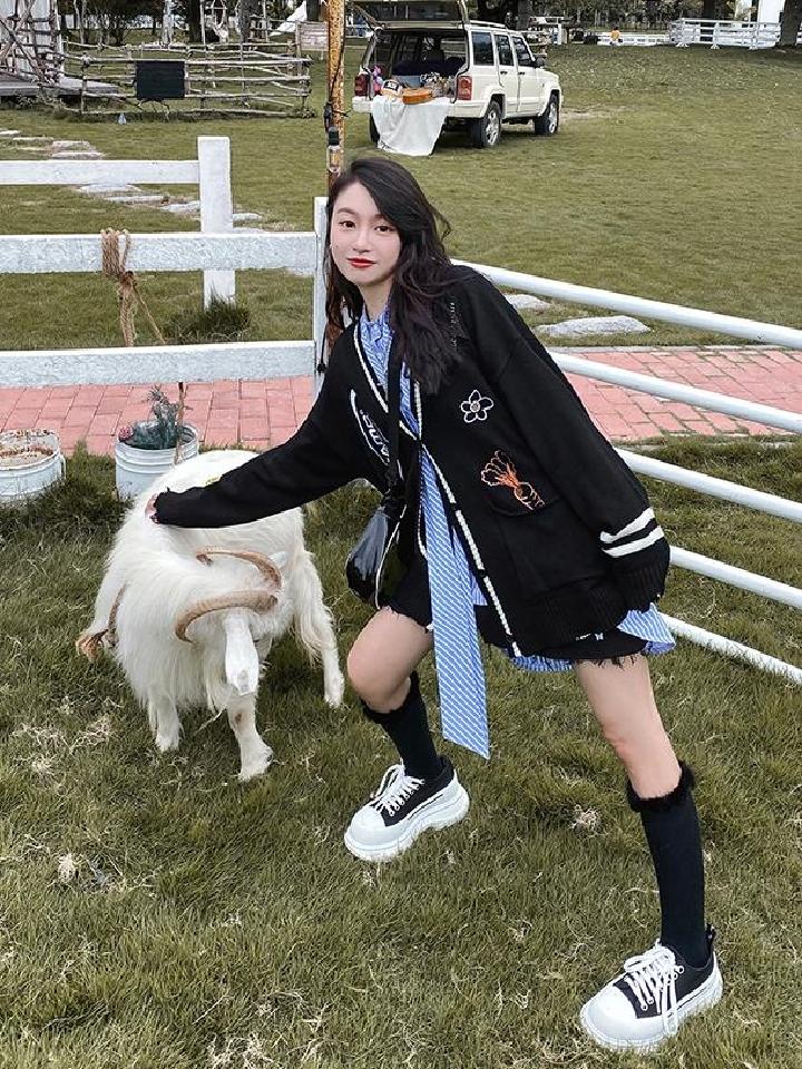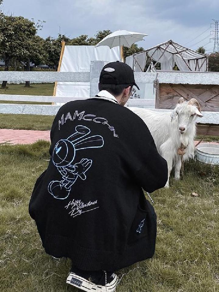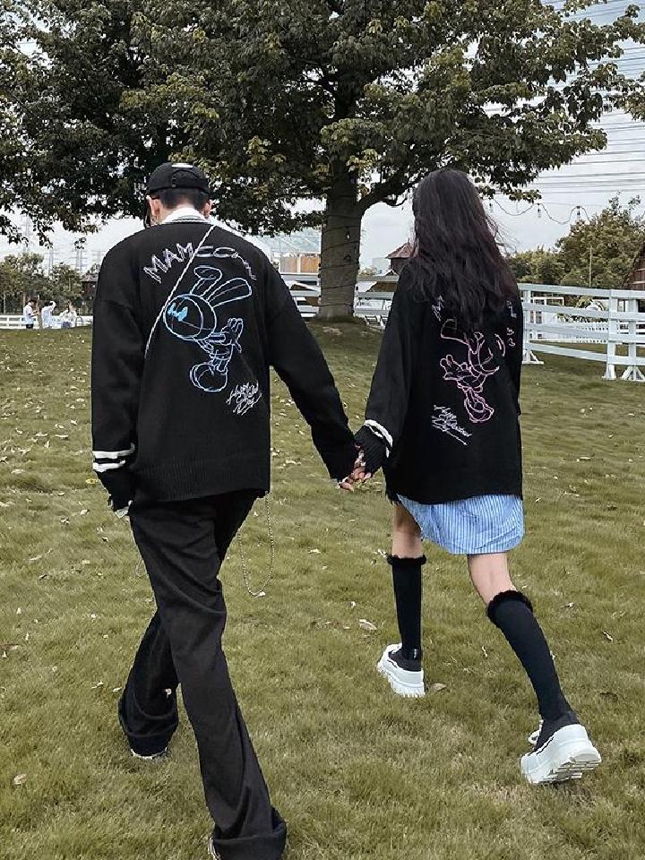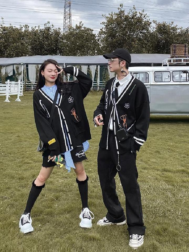此款围绕情人节主题设计的情侣款开衫外套,选用V领开衫版型设计,领围至开衫处设计撞色提花绣花线条拼接,上身具有复古学院气息与俏皮可爱的甜蜜感。