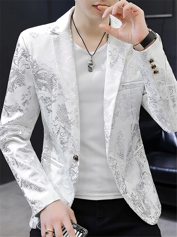 简约休闲的韩版西服外套,时尚韩式修身剪裁,上身更是挺括显瘦。经典的驳领设计,无处不彰显着男性的洒脱干练之气。此款外加针织面料,十分柔软舒适,悬垂性佳,透气清爽,搭配时尚中袖的绅士衬衫,是您宴会中不可或缺的一件单品。优质纤维面料混纺,使得衣身具有一定的弹力,而且满布的格纹点缀,更显时尚气息。