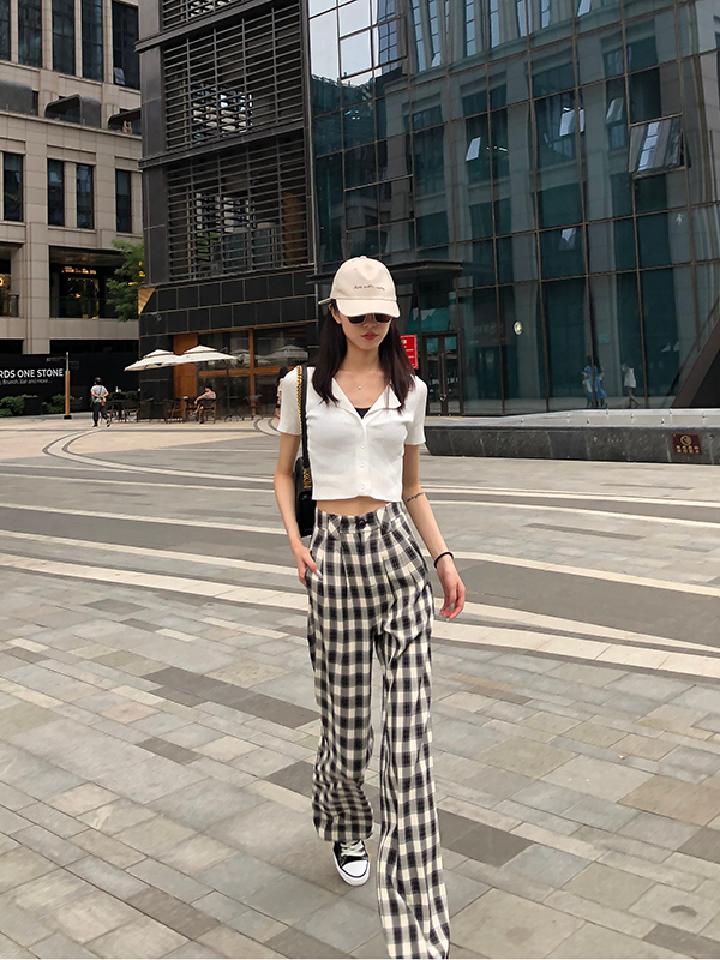 宽松的直筒西装裤版型,上身没有束缚,特别是粗腿的妹子,可以选择这款,因为它是直筒的所以真的很修饰腿型,加上宽松的版型,也不会显肉。