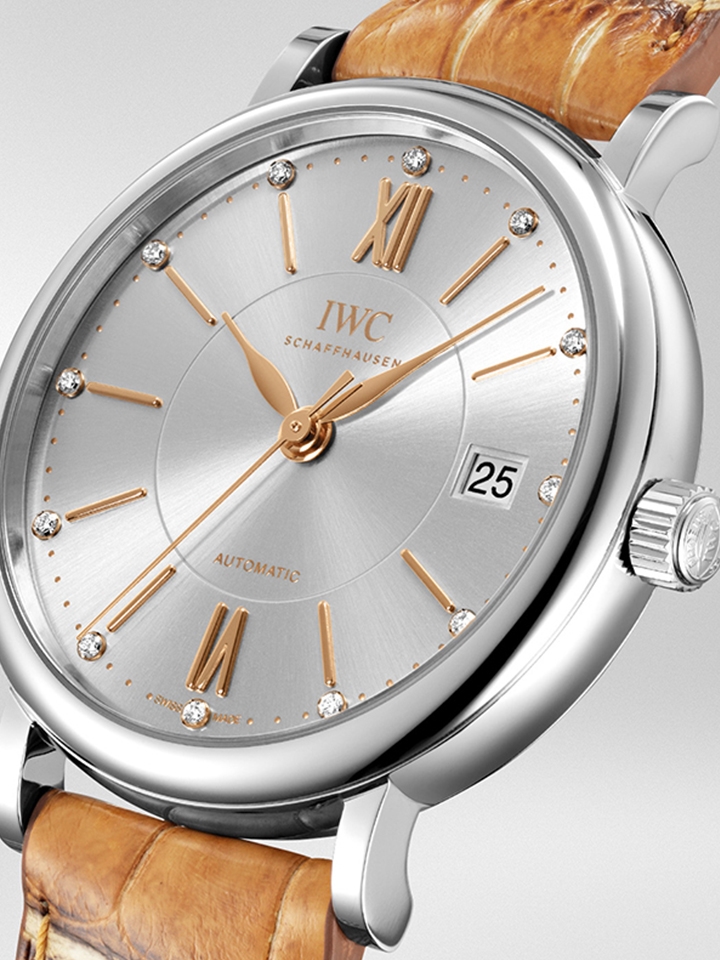 万国柏涛菲诺系列腕表向来保持简约、经典的风格,这款腕表盘面上大三针和日历窗口组合不多不少,恰到好处。