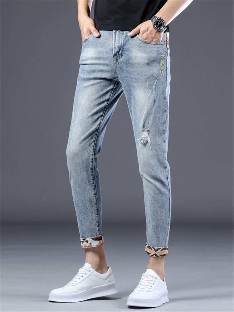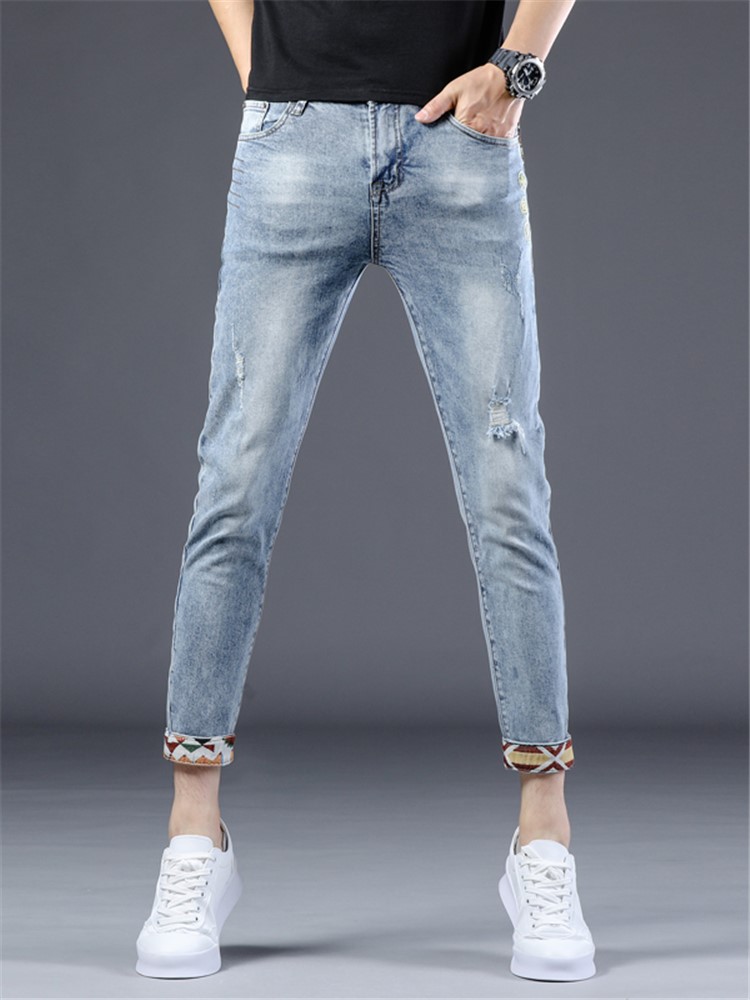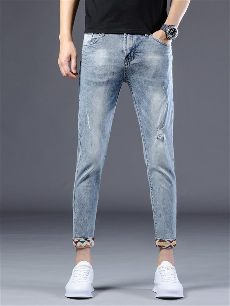舒适又好看的一条破洞牛仔裤,极具修身的小脚版型与精致的细节,勾勒出完美的曲线。磨破水洗工艺让简洁的款式,充满时尚感。拉长腿部线条,尽显修长双腿。九分裤的设计又为牛仔增添一份俏皮。舒适柔软亲肤的面料就像是一曲美丽的音乐不禁的动起来。