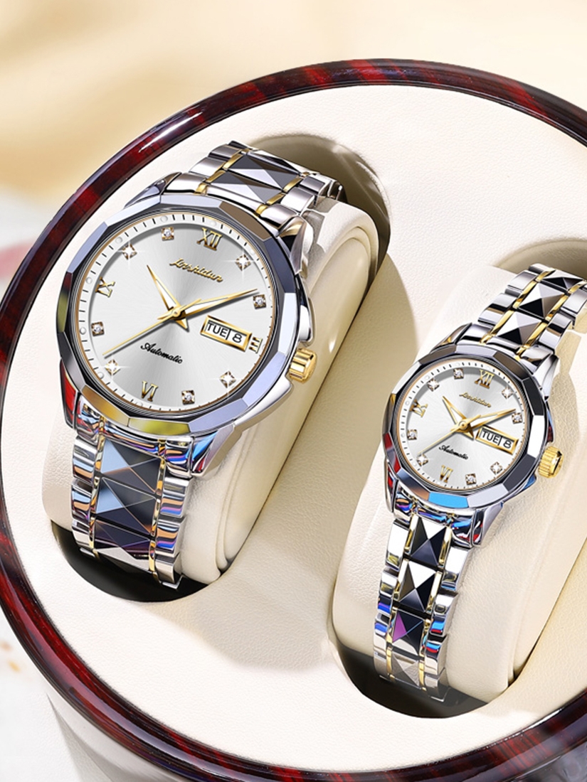 极致超薄情侣对表,蓝宝石镜面突显此款手表的坚固。