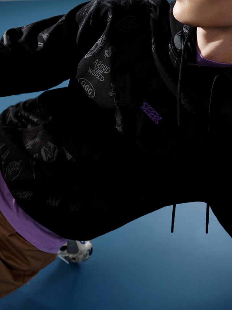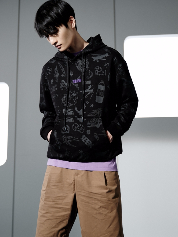 经典百搭的黑色,适合更多穿搭,运动休闲感十足。配以新潮个性的白色胶印印花,对比鲜明,街头范儿显眼夺目。