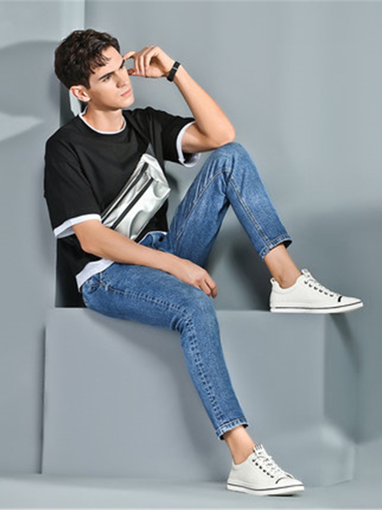 这款牛仔裤的设计很有特色,高腰的版型,很好的修饰了身材比例,显瘦效果很棒,搭配一件T恤,就能轻松穿出时尚感。