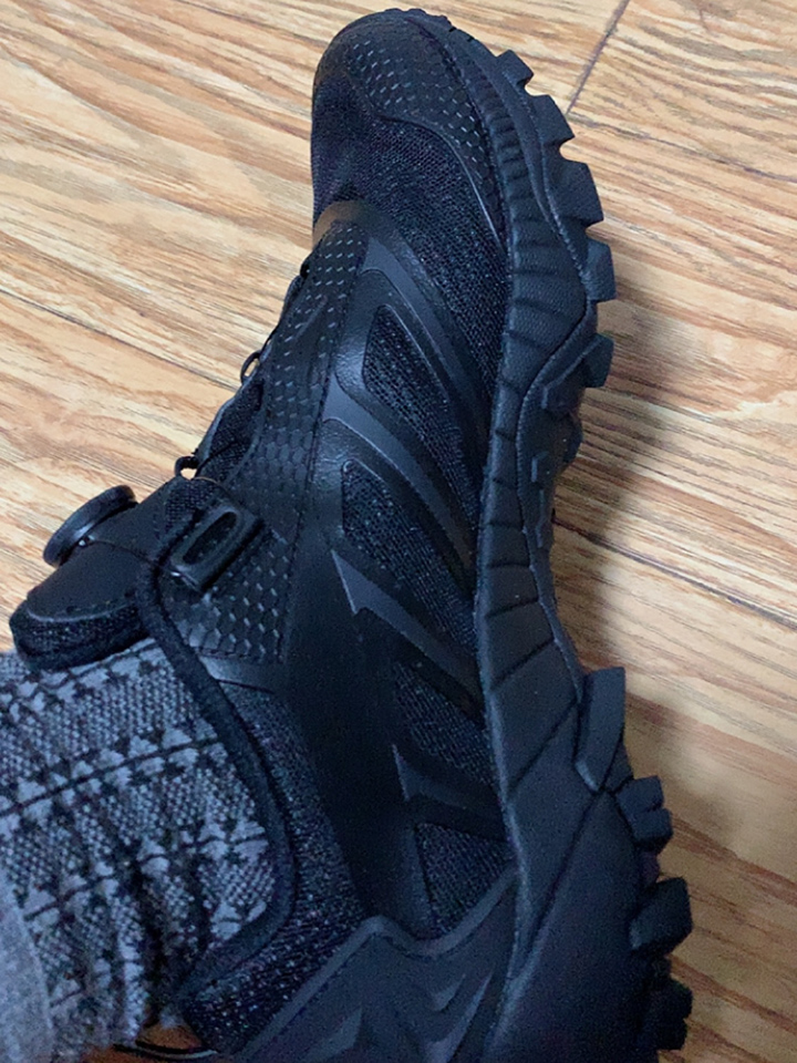 这款鞋子优化了前脚掌宽度,释放脚部空间,更符合亚洲人脚型;采用了EVA中底,大面积接触面,增加地面的抓地力,刻纹鞋底中腰,在崎岖地面增加摩擦力。