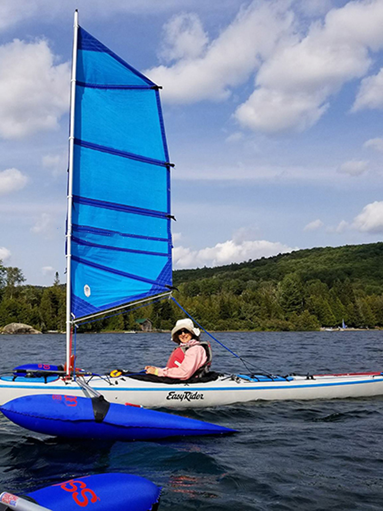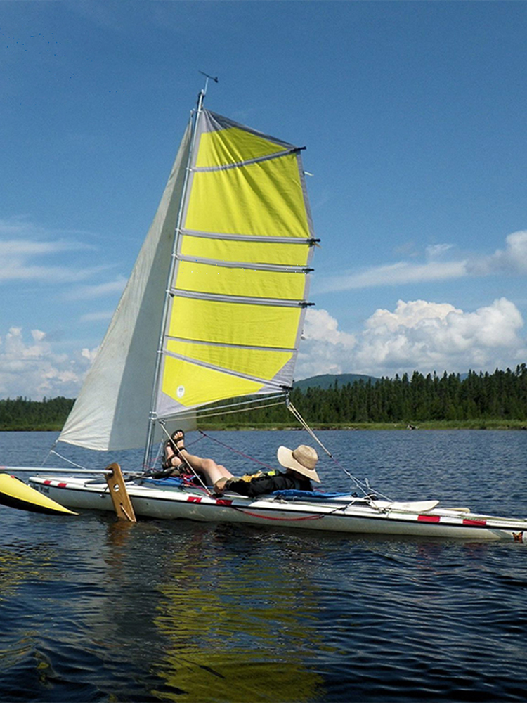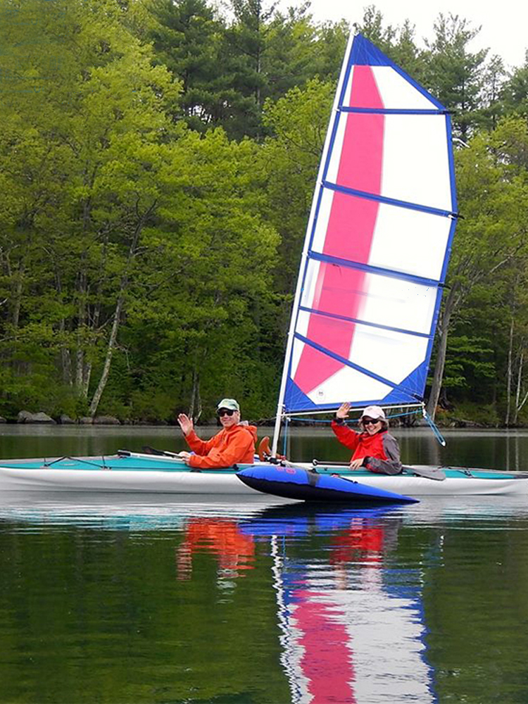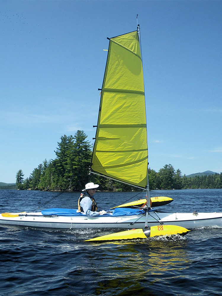 AQUA MARINA品牌所出品的一款皮划艇风帆,包含着帆、碳纤维桅杆3节、万向节、帆固定绳子、收翻绳、帆骨、帆架、滑轮、帆桁、浮筒以及侧向稳定板等的部件。船帆具备着巧妙的结构,可以实现姣好的抗风能力。