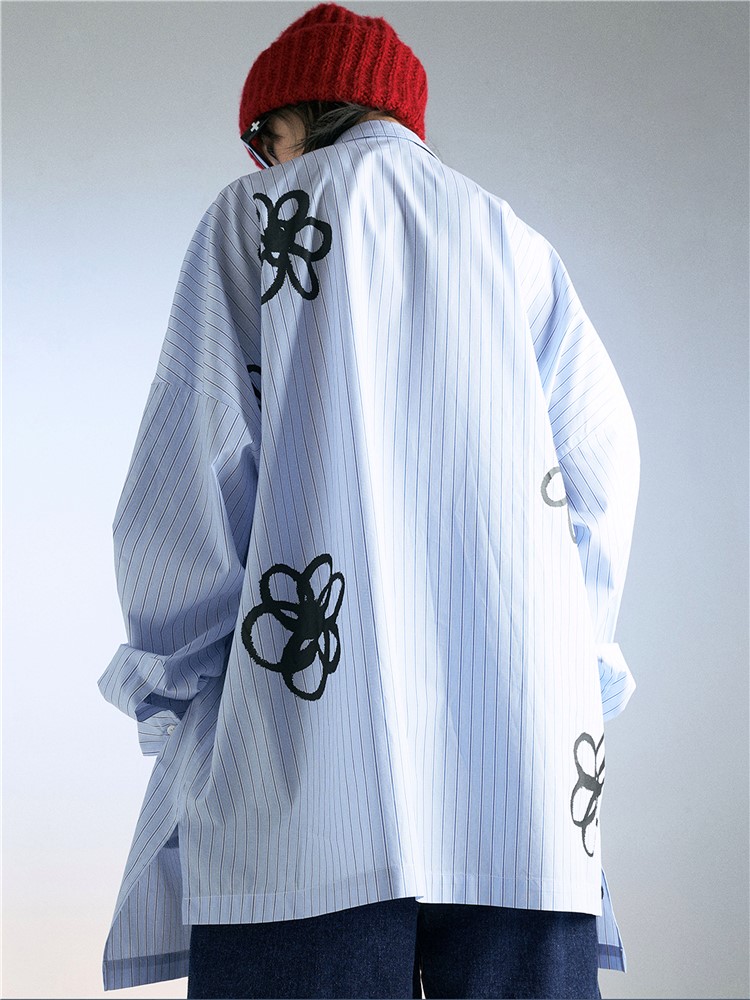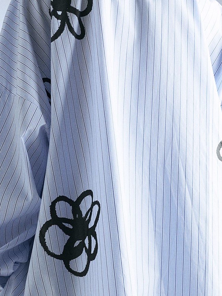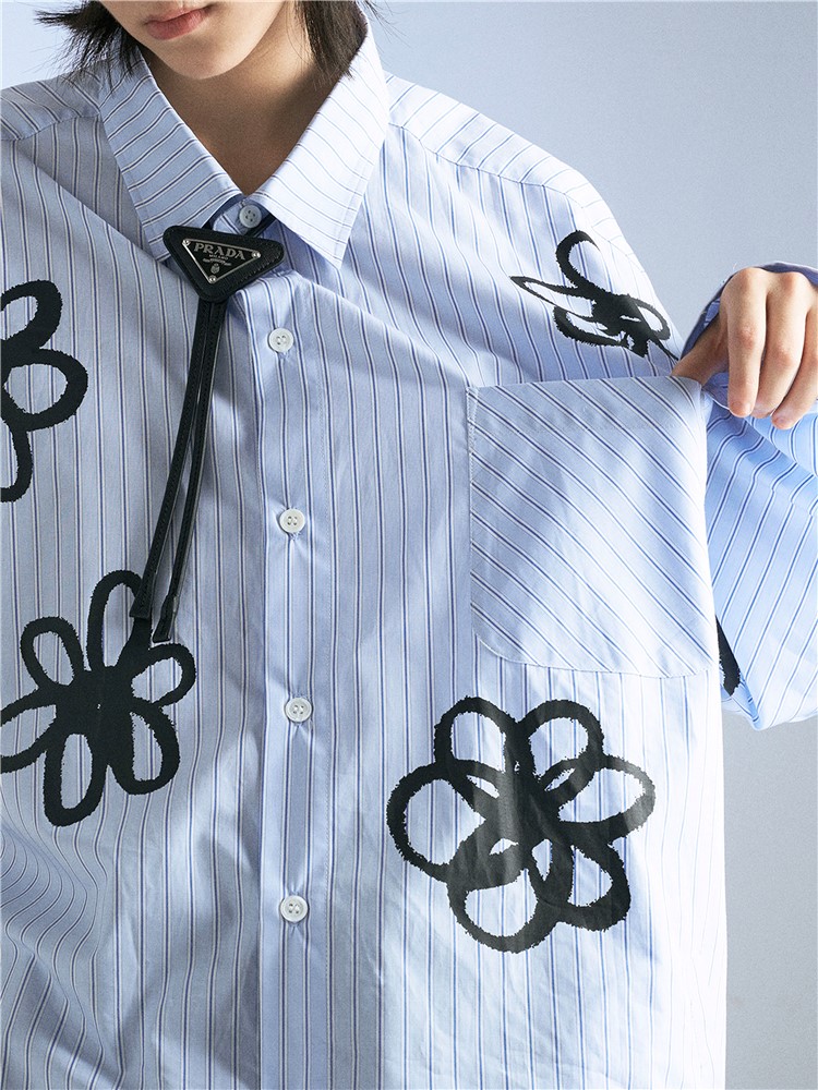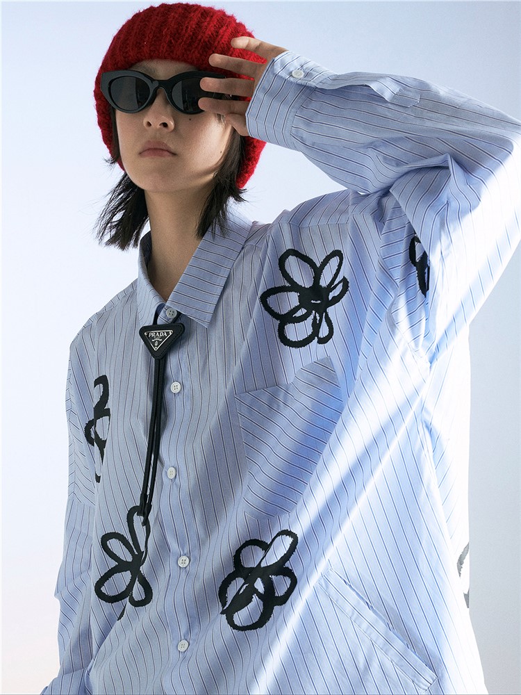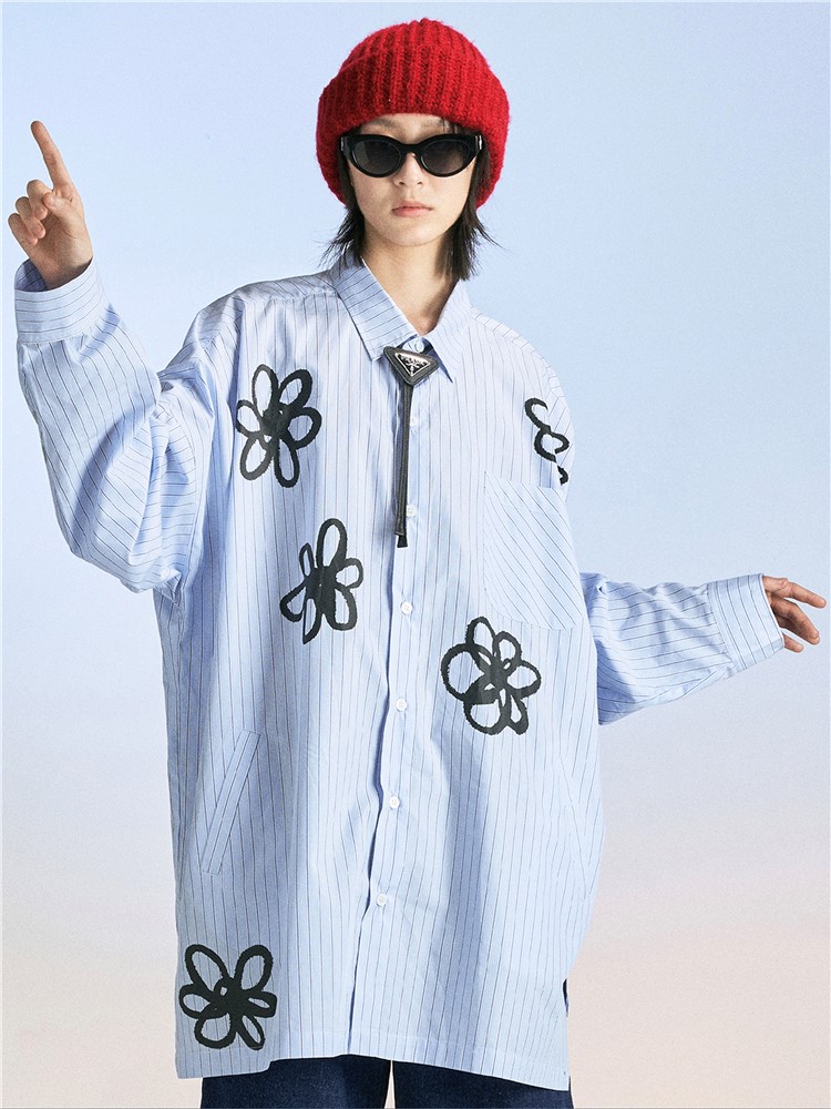 衬衫采用了纯棉的面料,手感柔软舒适,透气性好,穿着舒适透气,经典的条纹元素,搭配上清新的印花,显得很有文艺范儿。