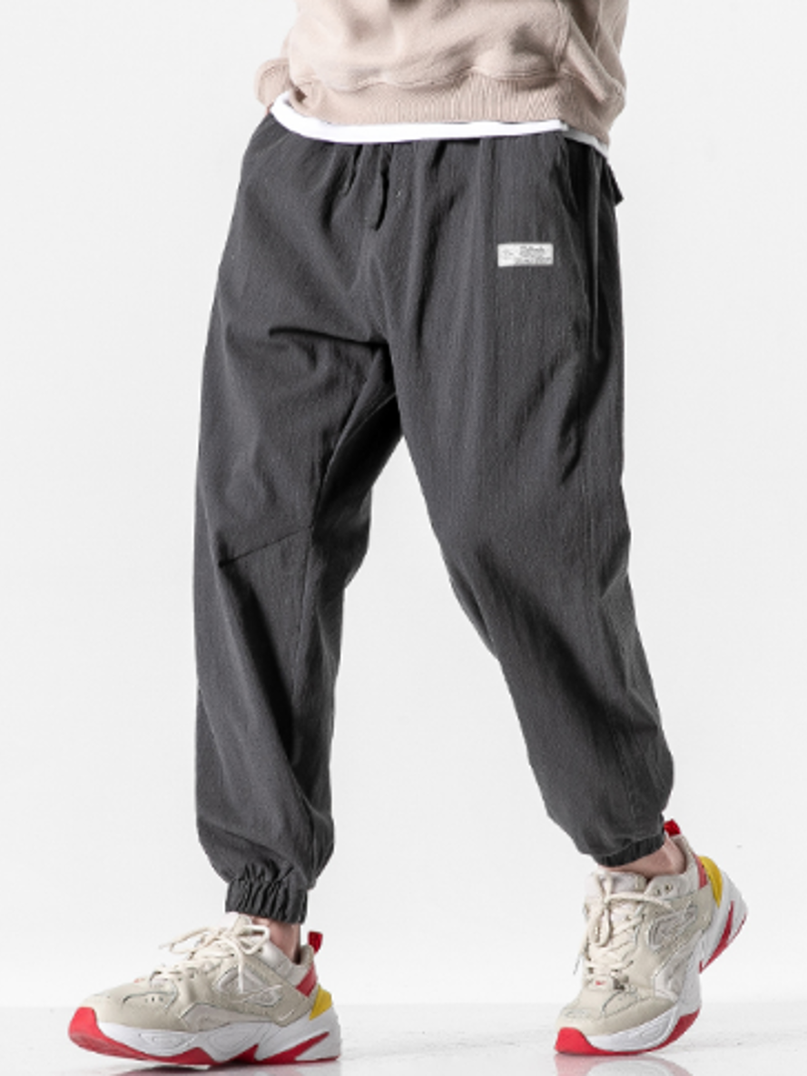 采用轻薄面料,清爽透气;中腰修身款,拉长身体比例,显腿修长有力;裤脚处独特的束脚设计,彰显个性与潮流,适合青少年。