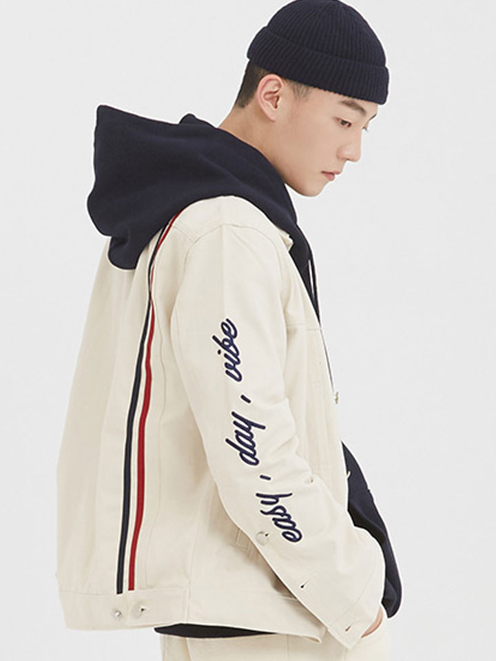 袖子上的英文刺绣,点缀整个衣身,穿起来不会太过单调。两侧做对称插袋设计,美观大方。密车线缝制的下摆,不会变型,耐穿耐洗。