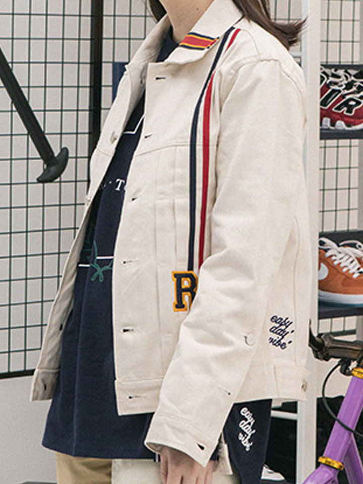 休闲机车夹克外套,米色简约百搭,十足的复古气息。小翻领的样式带着干练,宽松的版型演绎出休闲范儿,青春显潮。