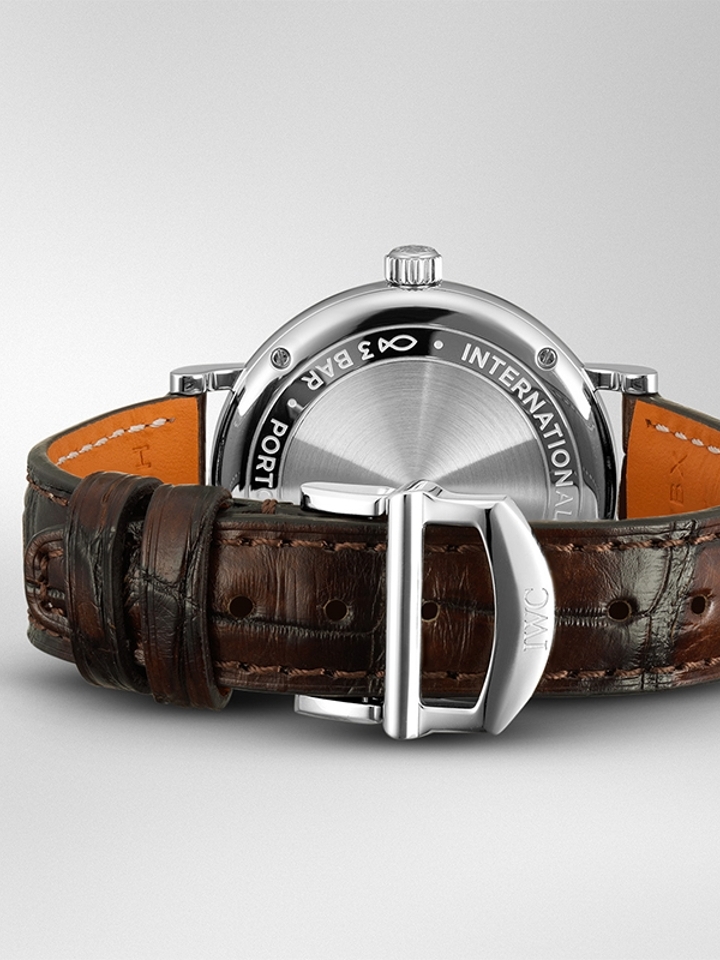 万国柏涛菲诺系列腕表向来保持简约、经典的风格,这款腕表盘面上大三针和日历窗口组合不多不少,恰到好处。