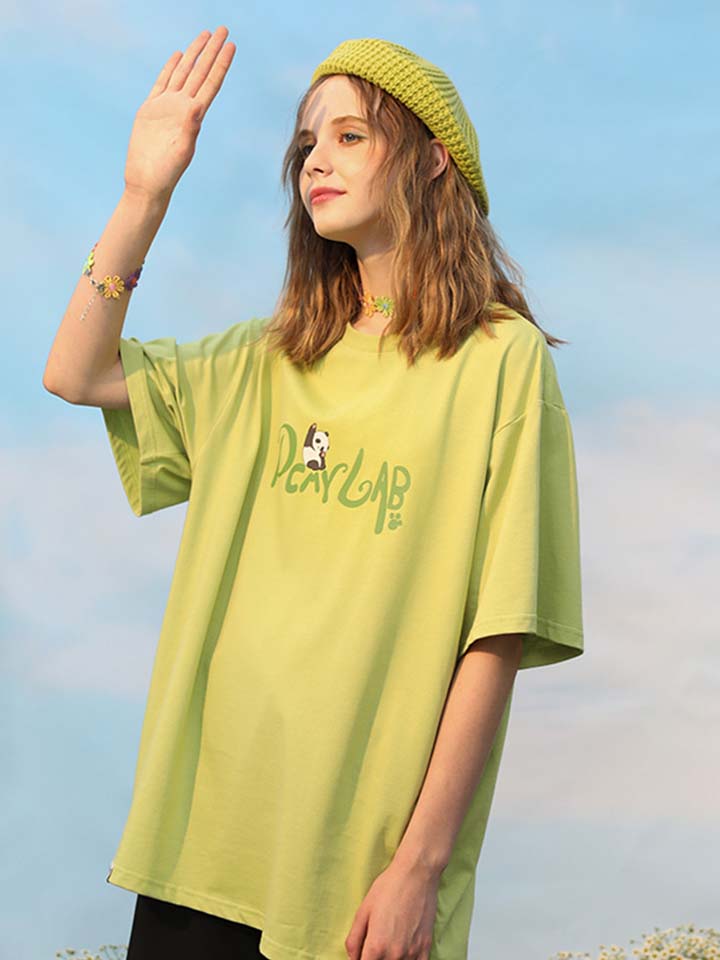 圆领不仅展现独特的魅力,同时还微露出迷人的锁骨曲线,显得大方又时尚。宽松的版型,上身清爽舒适不挑人,修身显瘦效果好。卡通印花图案装饰,点亮了整体的造型。