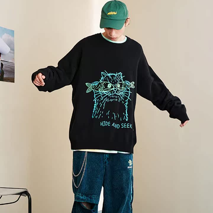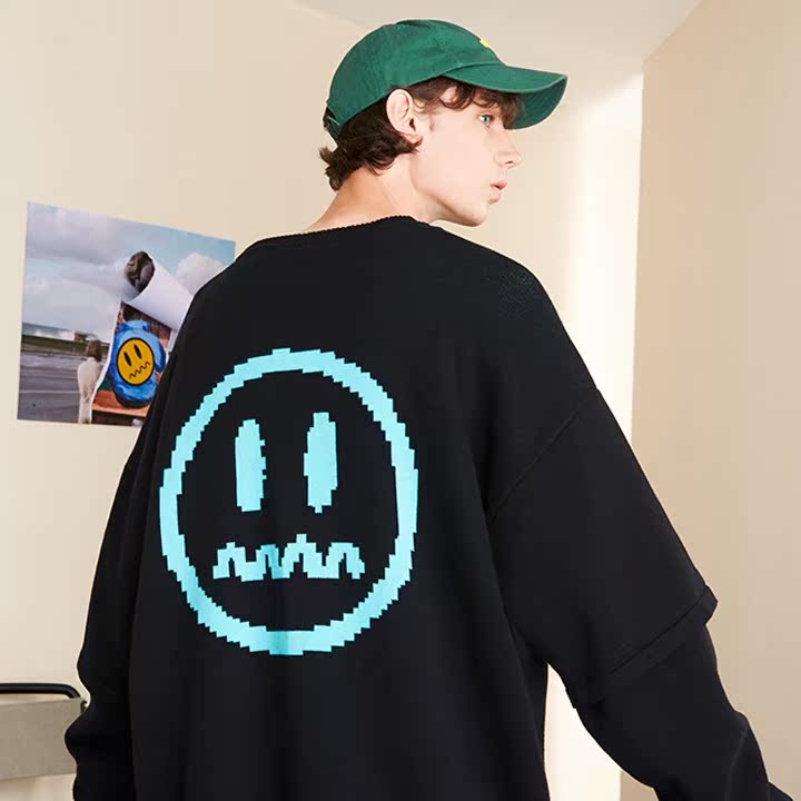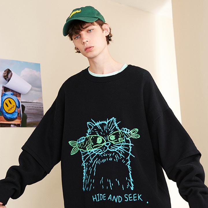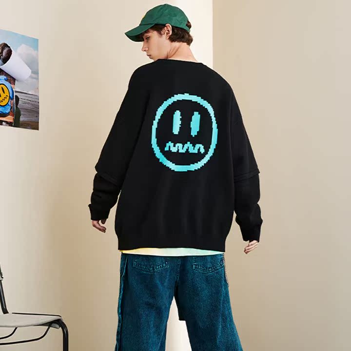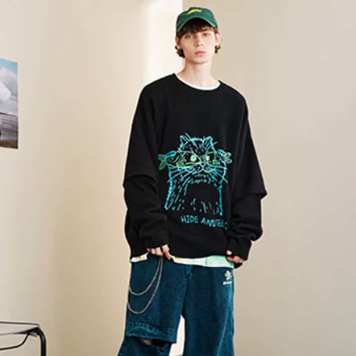 时尚假两件针织衫搭配宽松牛仔长裤,轻松让你潮流出街。