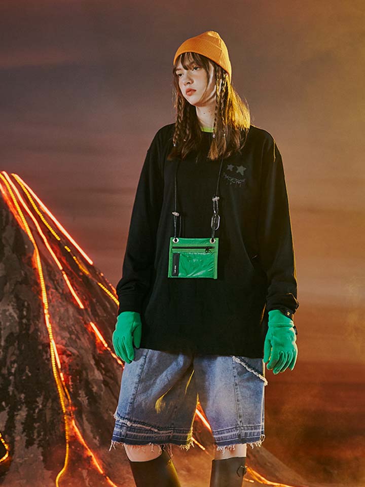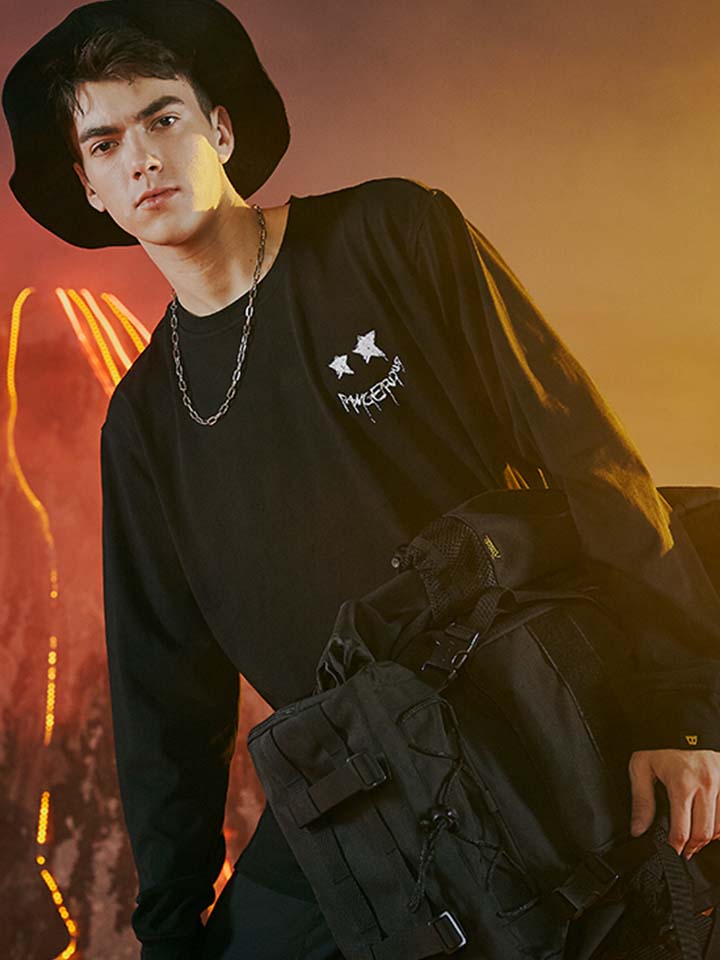来自Dangerouspeople上衣T恤,星星眼纸袋人印花点缀,起到很好的吸睛效果,增添趣味性,活泼减龄,随便搭配一条牛仔裤就很不错了。