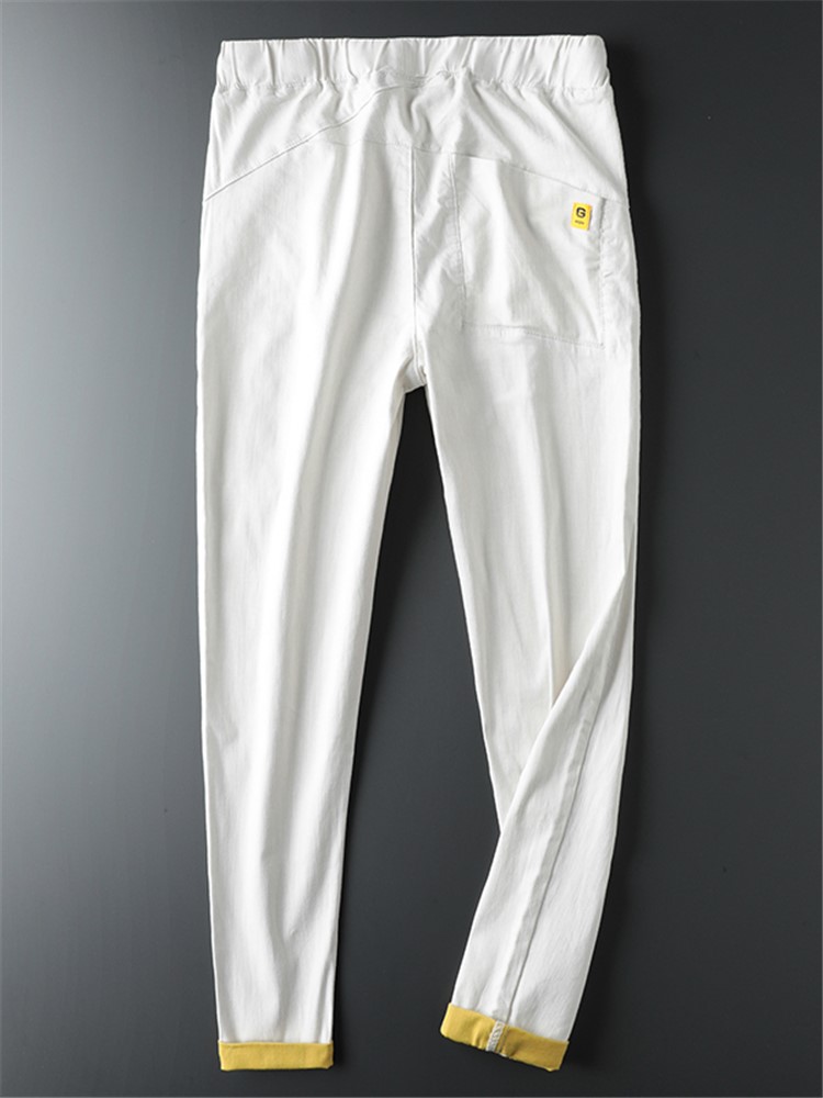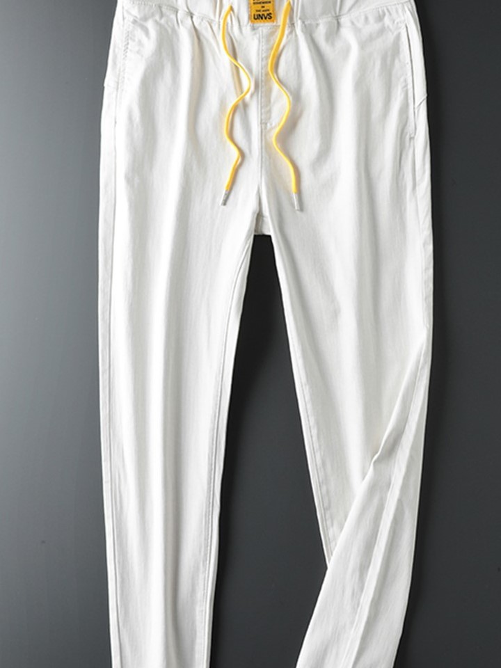 舒适耐磨的牛仔布面料,质地柔软,穿着亲肤舒适性好。微哈伦版型的裤身,遮住腰腹部的小赘肉,呈现出松松垮垮的休闲范。腰部松紧的系带处理,对腰围的限制性小,穿脱方便且自在。