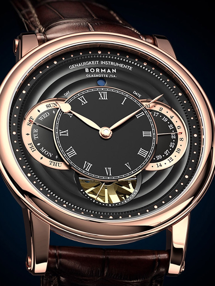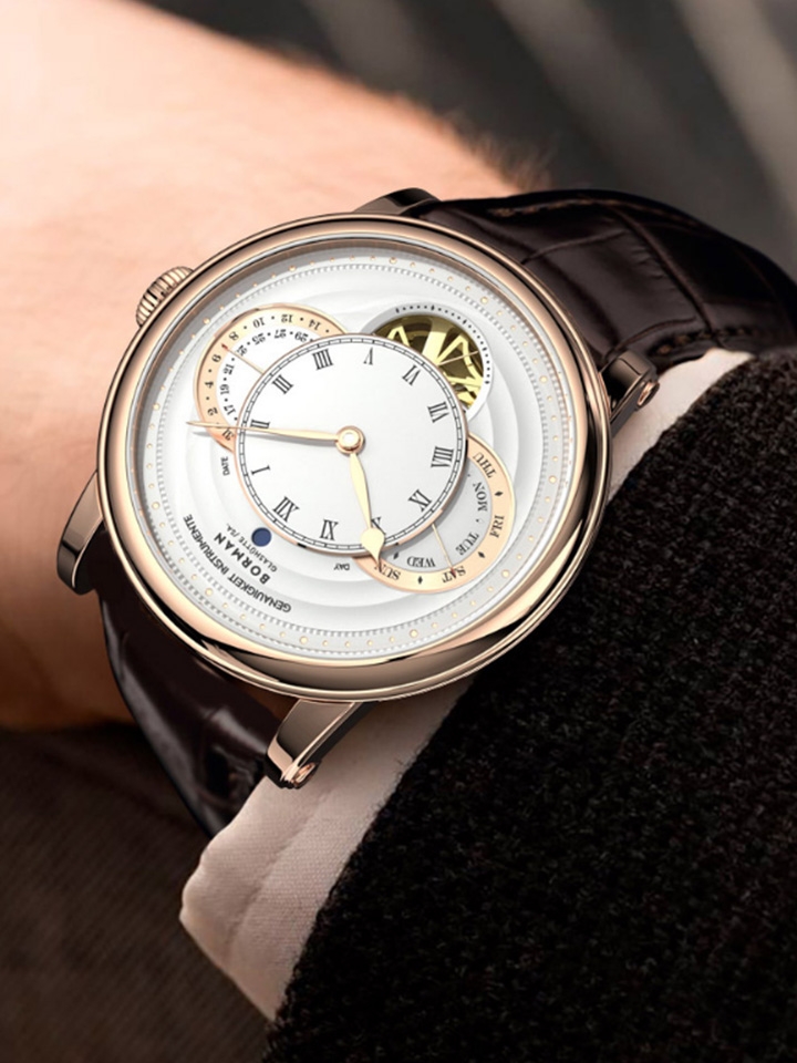此款全自动机械表,牙圈环绕造型独特,打破了传统手表沉闷的格调。