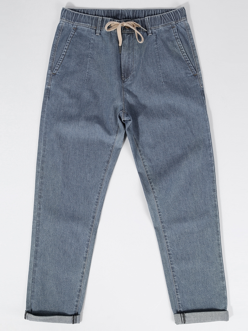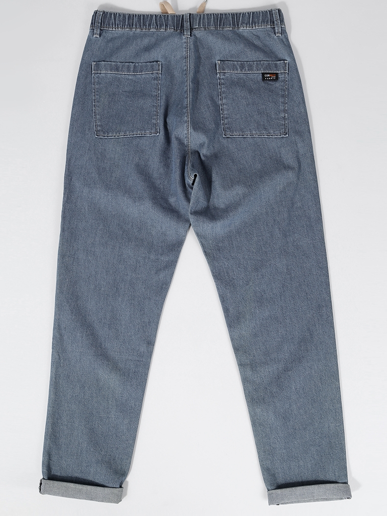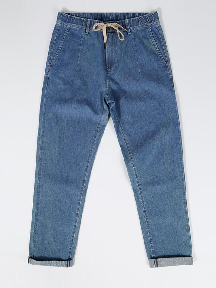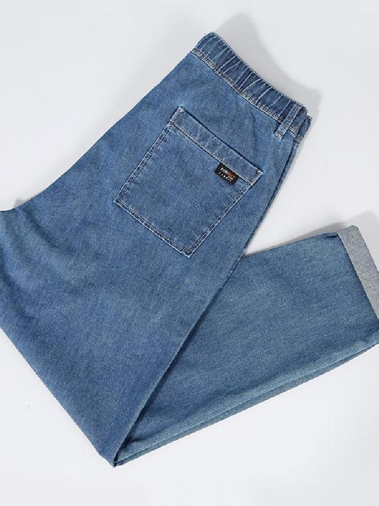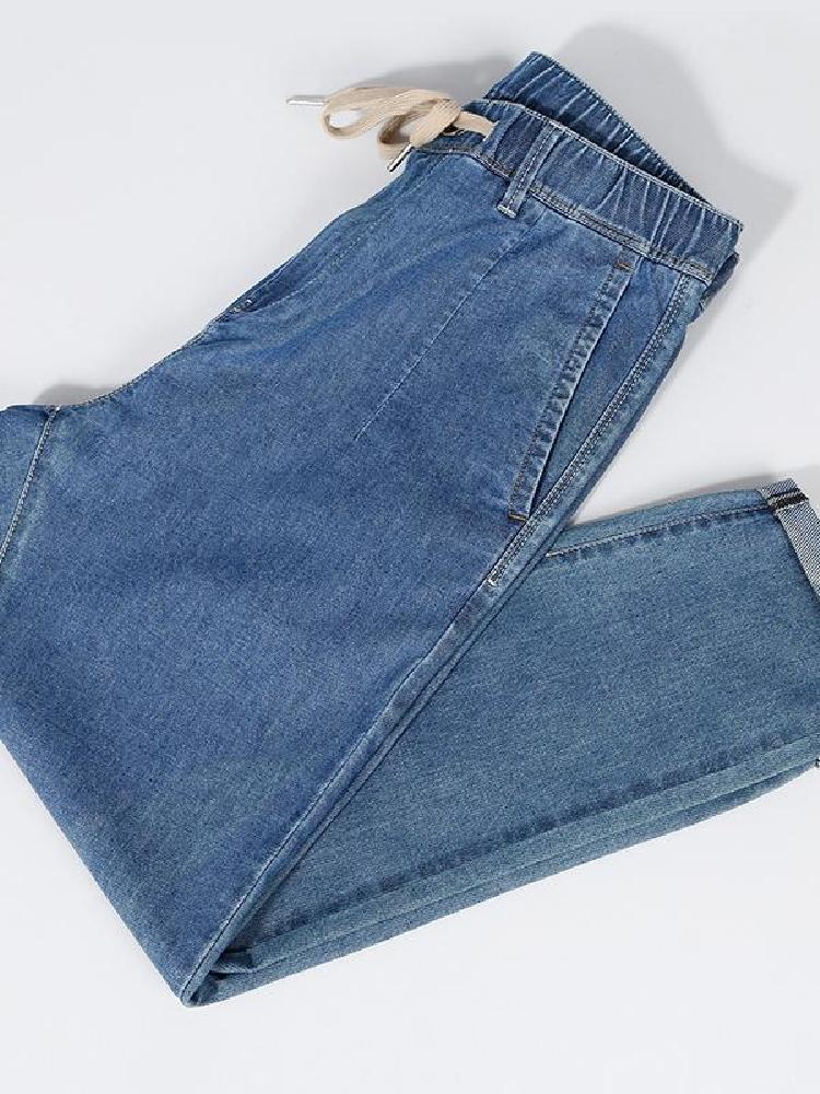 休闲宽松的九分裤牛仔裤, 适中的松紧穿着舒适轻松, 磨白的水洗工艺,穿着显瘦, 也有着良好的固色性, 车缝线具有极好的装饰性 n