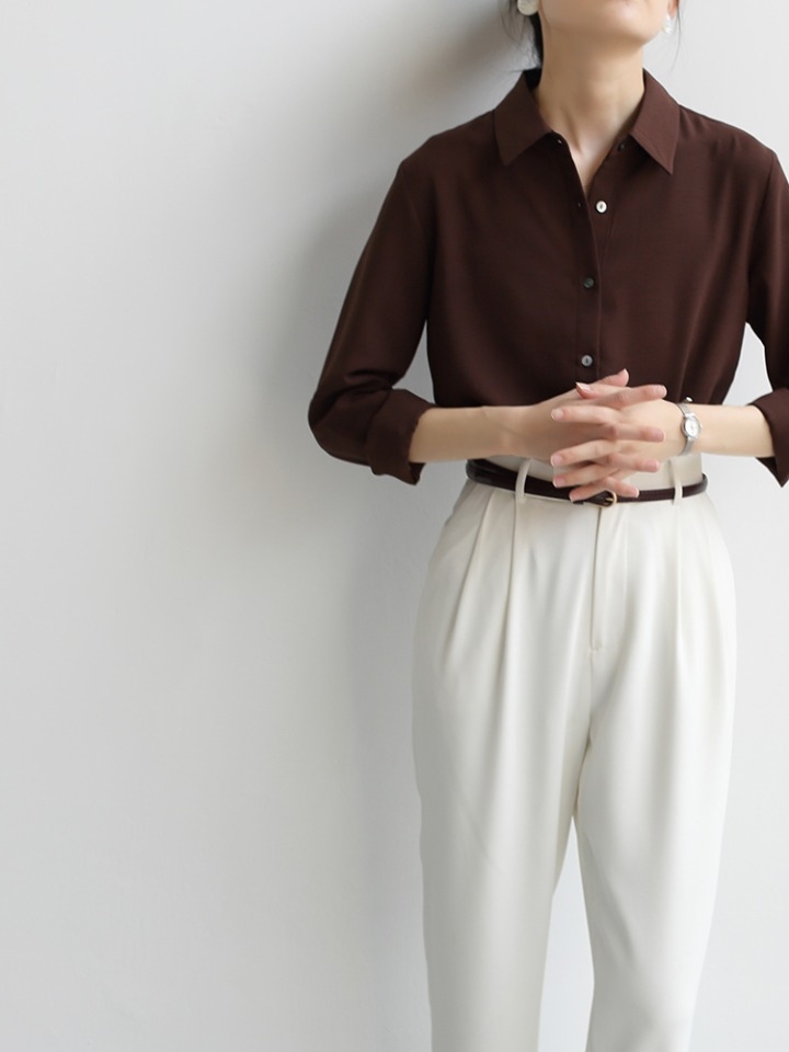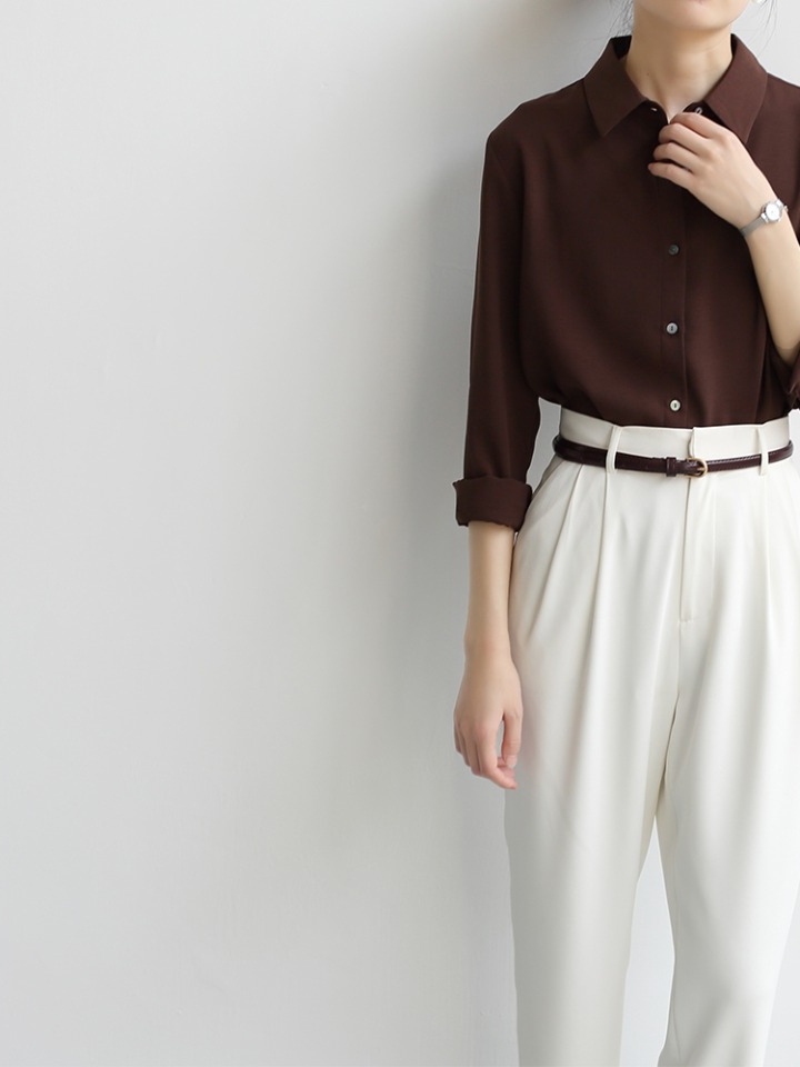 简约的高腰设计,搭配上修身的版型,上身显瘦又显高。
