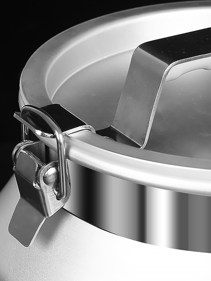 罐身由铝合金材质制作,做了加厚处理,提升了质感,更加的耐磨耐用,打磨光滑细腻,富有光泽感。盖子部分用到了硅胶密封圈,真正的做到了密封。卡扣由不锈钢制作,环保健康,可抗高温。