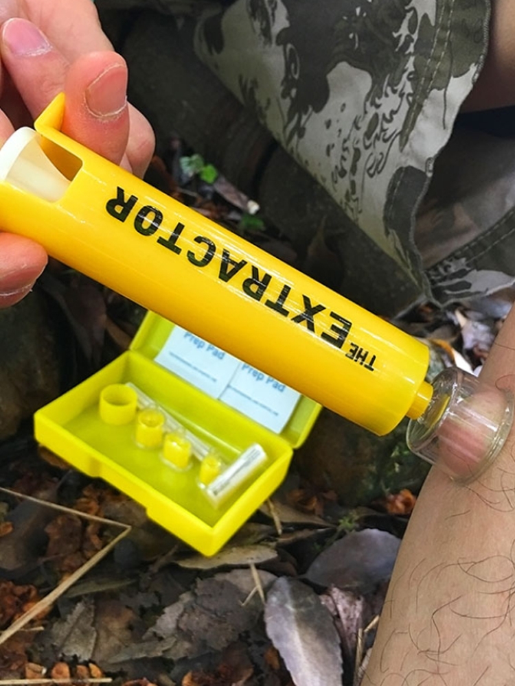 户外超便捷的拔毒器!吸力迅猛,功能给力,可针对于毒蛇、蝎子、黄蜂、蜘蛛等多种动物咬伤,应用范围格外广阔。抽拉式拔取设计,只需将吸杯接入设备并对准伤口,再进行如同打针般大幅度推拉便能释放出来,易学易会。