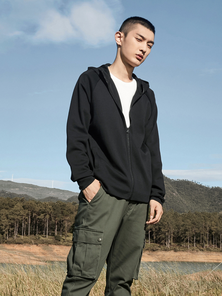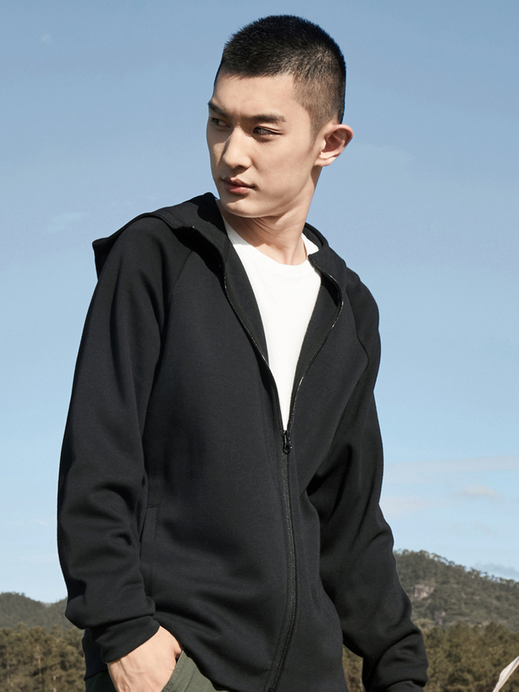 简约宽松的版型,可爱休闲的连帽,几分活泼的运动气息, 洋溢着潮男的个性。