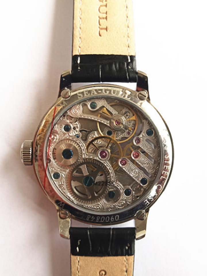 “海鸥”牌手表被国家评为“中国名牌”产品,这款海鸥机械表,这款海鸥镂空飞轮系列自动机械表,将传统与创意有机结合,表盘黑金配色,品味彰显。