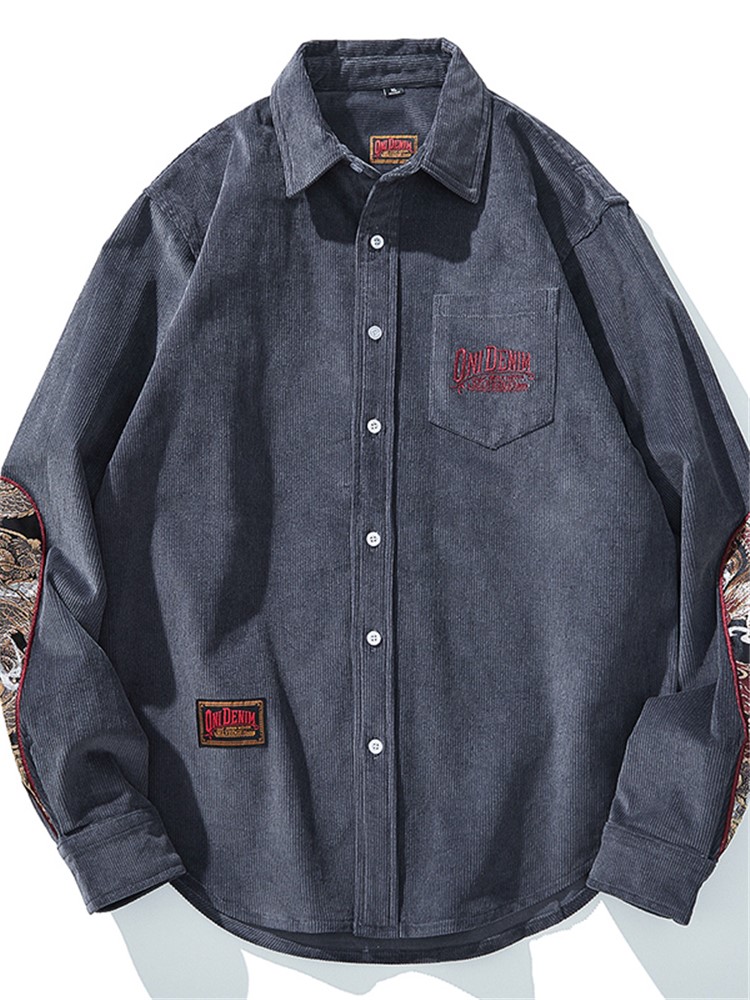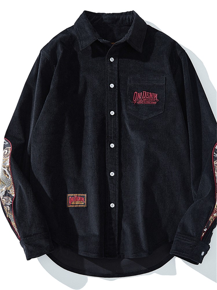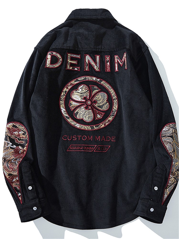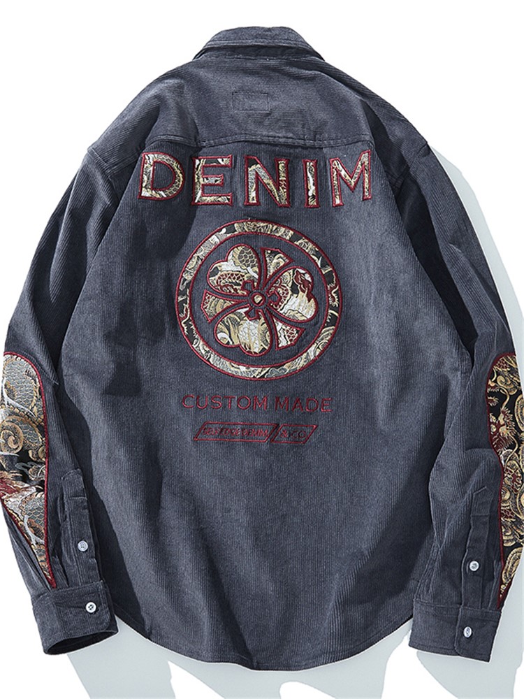 灯芯绒面料,手感柔软,穿着舒适,宽松的版型,穿着舒适,不挑身材,经典的翻领设计,时尚百搭,精致的刺绣,彰显品质,精致的刺绣,彰显品质,彰显品质。