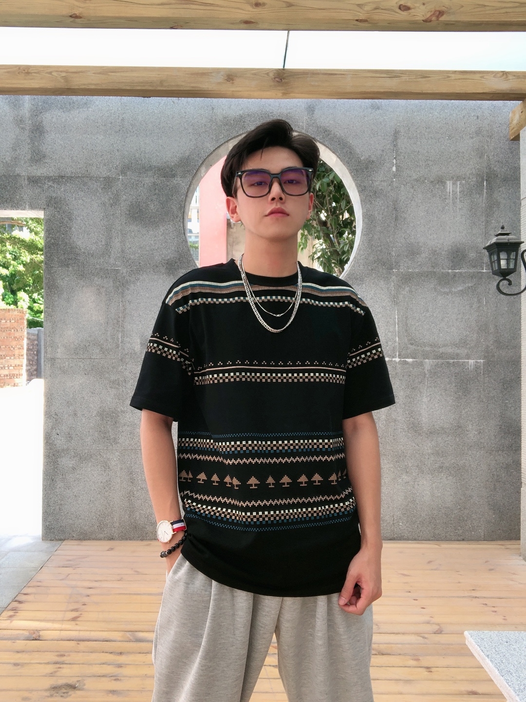 T恤的面料穿起来很舒服,摸起来也很有质感,比较透气吸汗,非常百搭,还是很有型的。