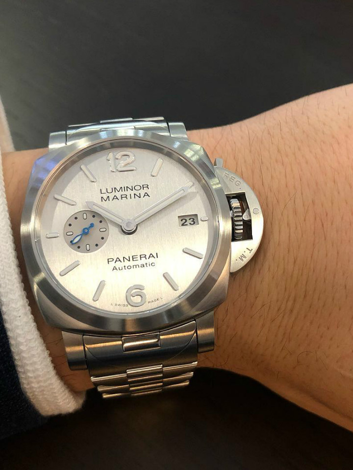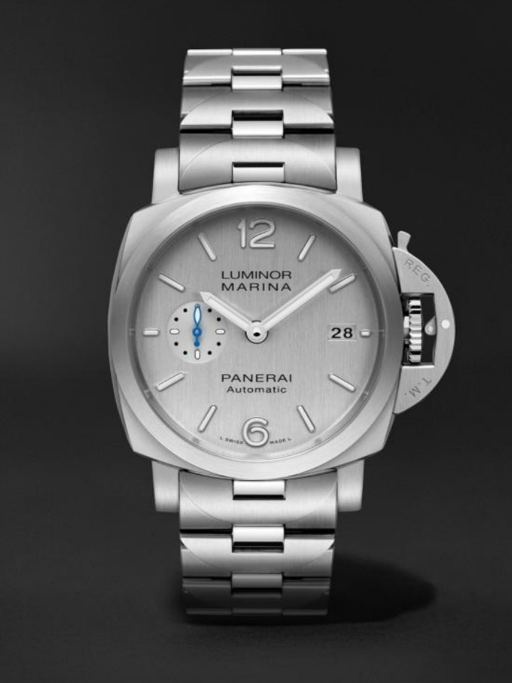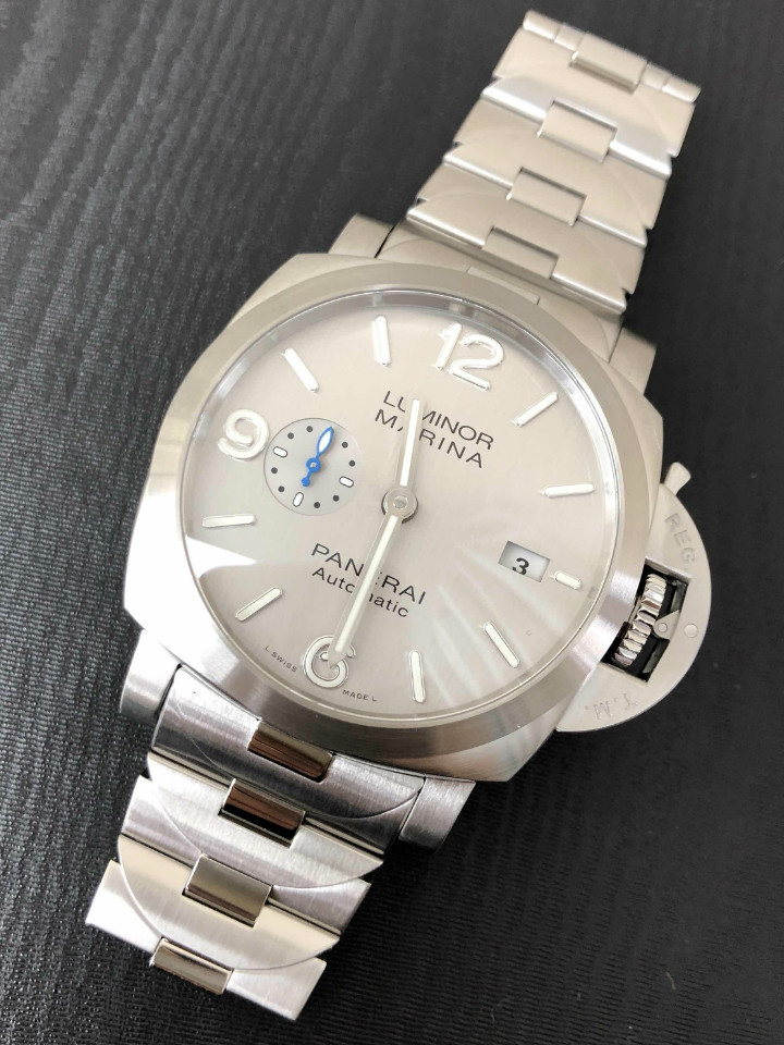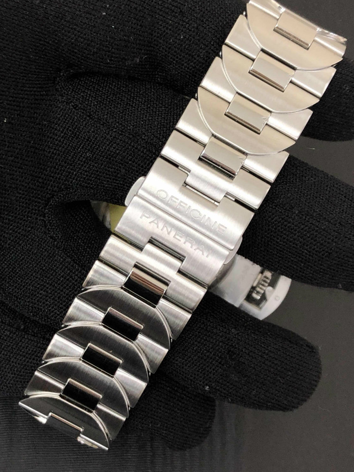 沛纳海推出新款luminormarina腕表,它所搭配的精钢表链与表壳浑然一体,链节设计灵感源自标志性的表冠护桥。链节的外形仿似标志性的“桥形”表冠护桥,链节之间和谐整合(没有使用任何螺丝),由此形成一款符合人体工学的表链。