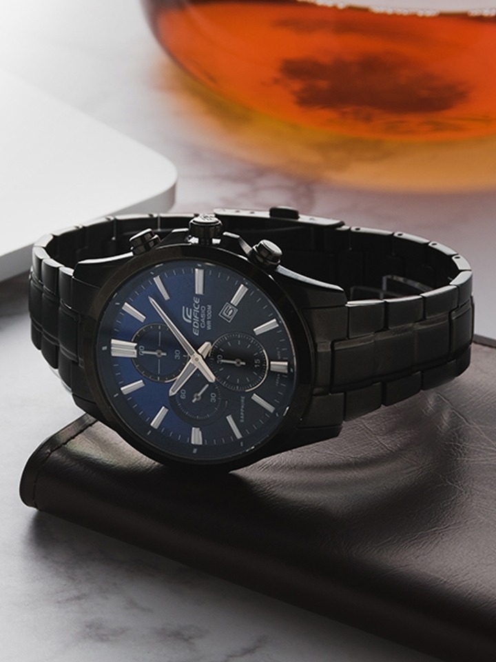 EFB-660系列不张扬又带点雅痞的外型,简洁自然的轻商务风,指针数字双显设计,加入独立秒针设计。全自动照明,智能识别,LED背光。炫酷大表盘为男性打造。