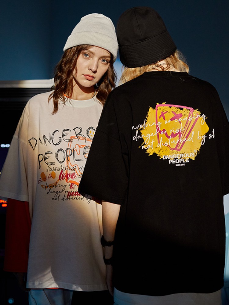 宽松T恤,让你穿着舒适,街头嘻哈风,玩转街头风,用涂鸦,把t恤穿出时髦感,你与潮人之间只差了一条手绘裙,你与潮人之间只差一件t恤。