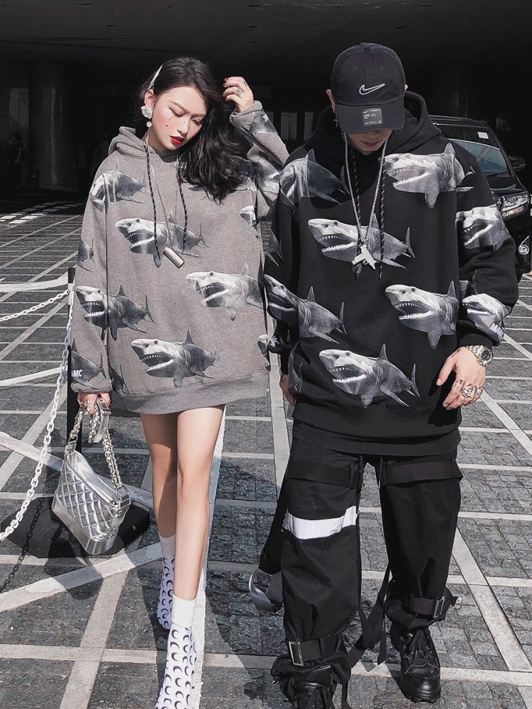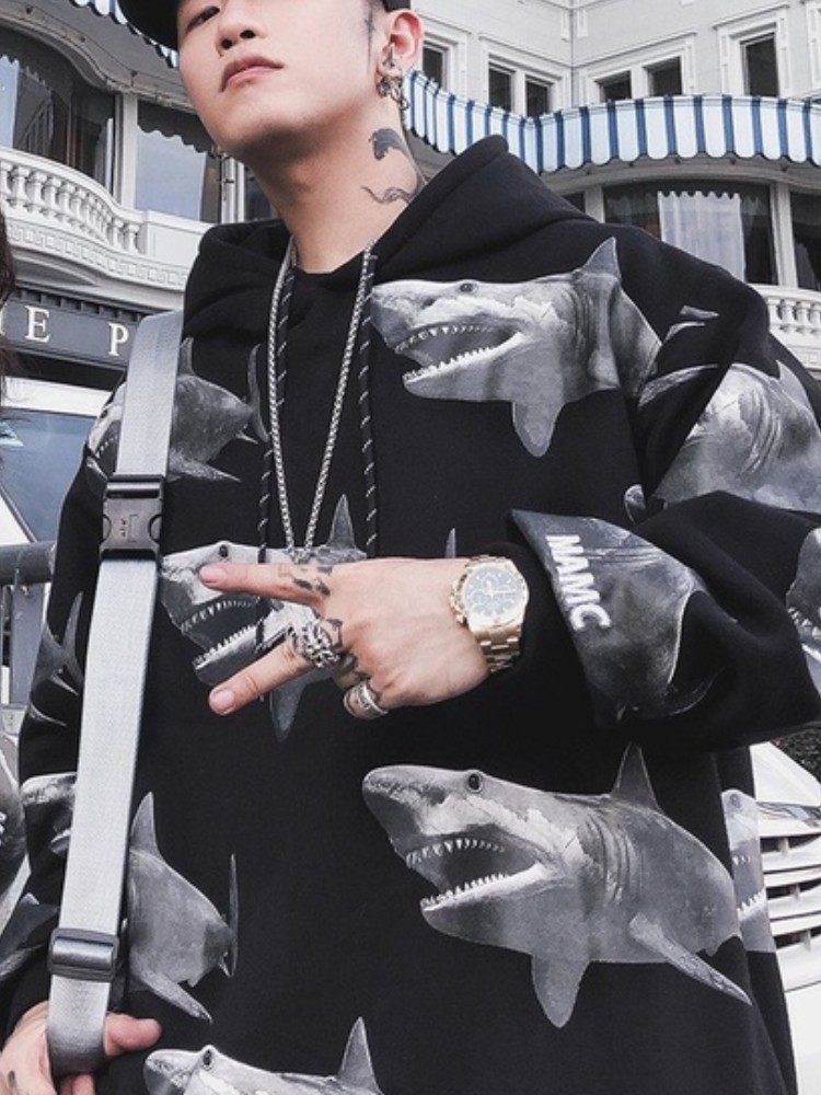 这款卫衣采用了优质的面料,手感柔软舒适,穿着亲肤透气,连帽的设计,更显时尚潮流,胸前的鲨鱼印花,充满了青春活力,宽松的版型,穿着舒适自在。