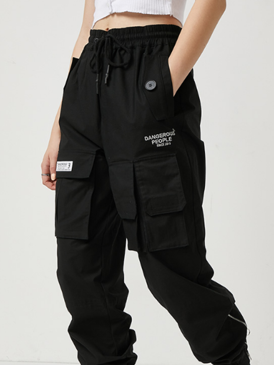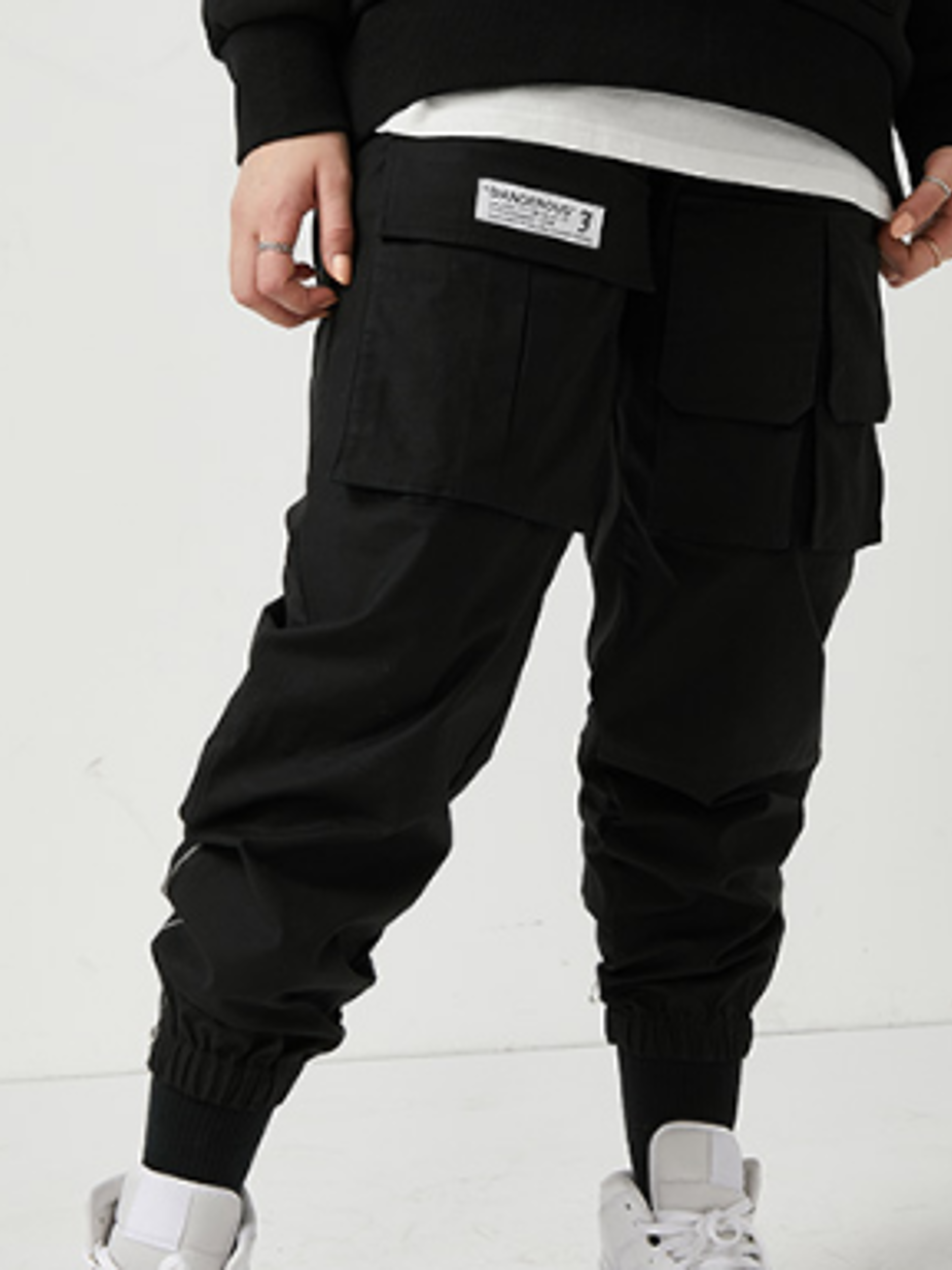 工装裤搭配束脚设计,非常时尚潮流,在脚口处设有拉链,别有新意的设计不仅美观穿脱也方便,可以随意调节大小。