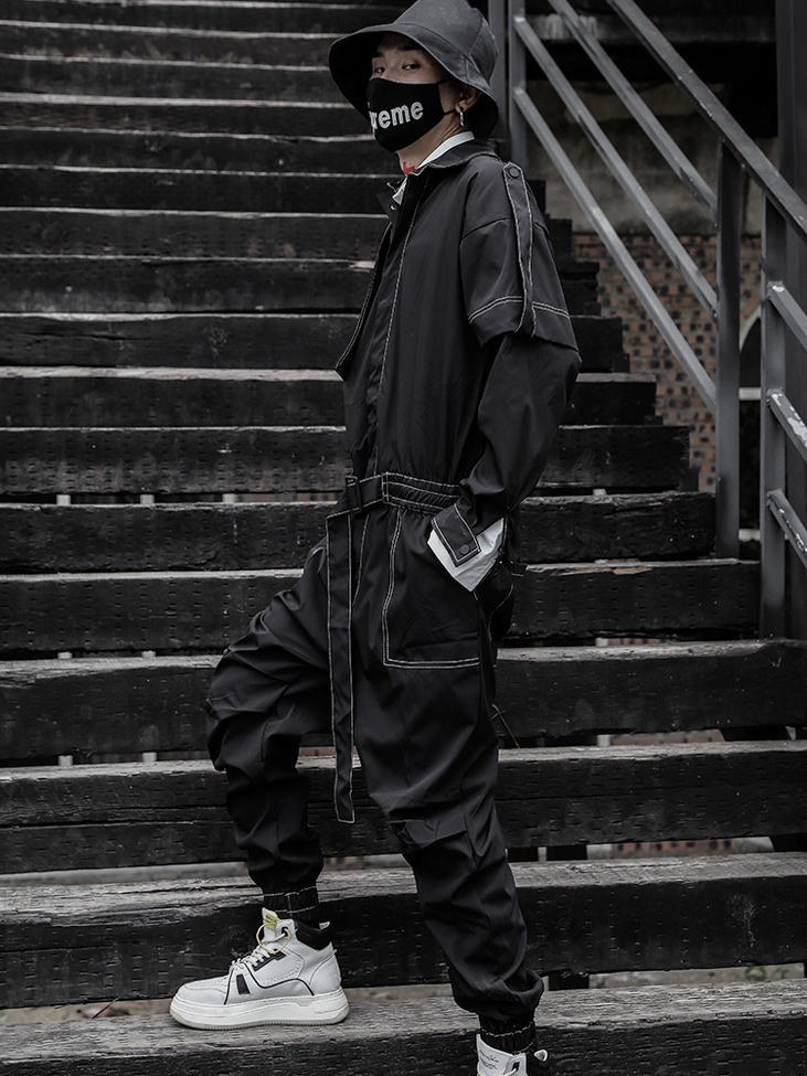 这款连体工装裤穿在身上效果极佳,经典的复古版型最大程度的体现出现代型男的独有魅力,让你成为街头一道行走的风景线。