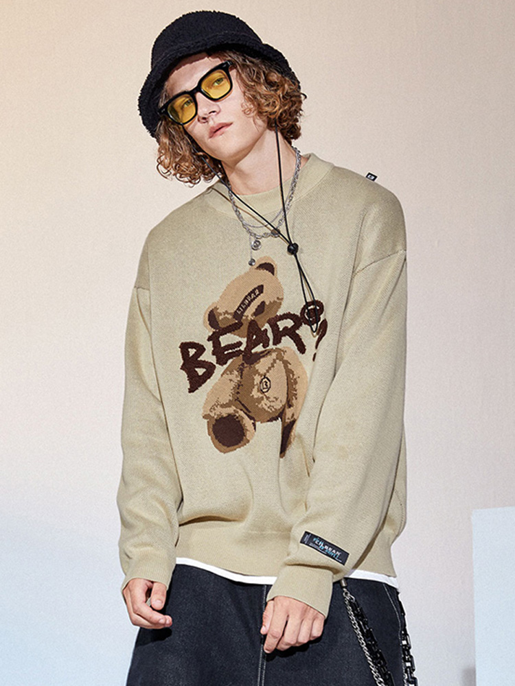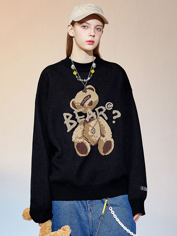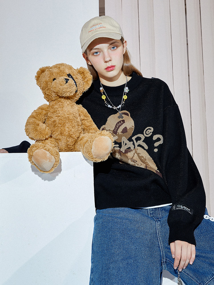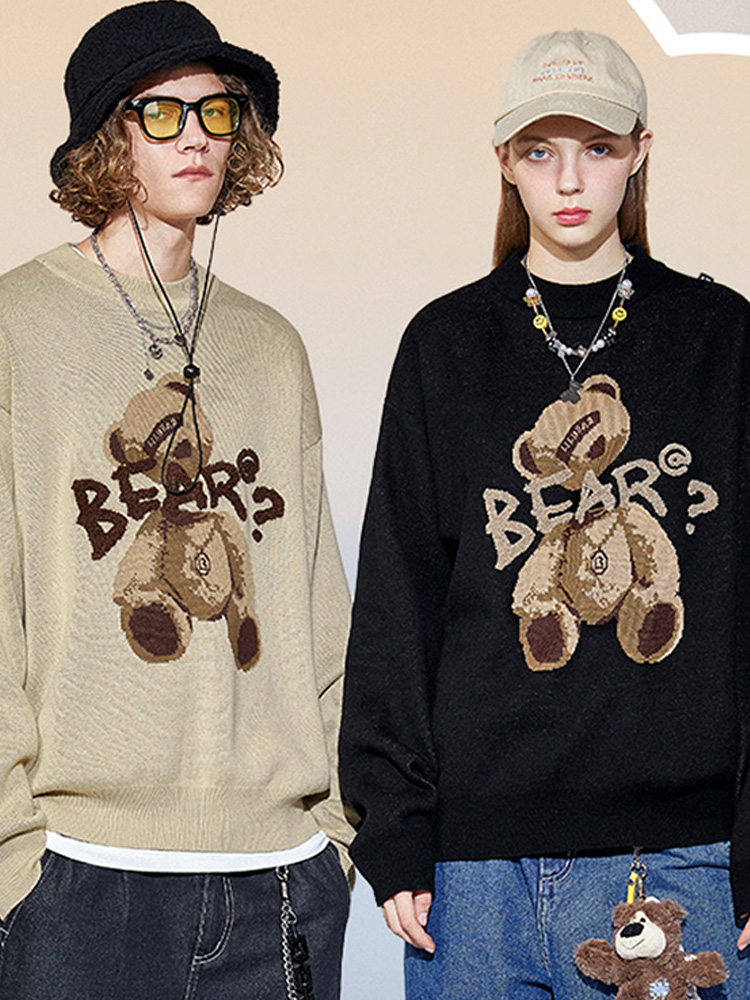 这款针织毛衣,采用了宽松圆领的版型设计,对于身型有着极佳的包容效果,轻松塑造出纤瘦身姿。而撞色的刺绣小熊图案,丰富了整体的视觉表现。