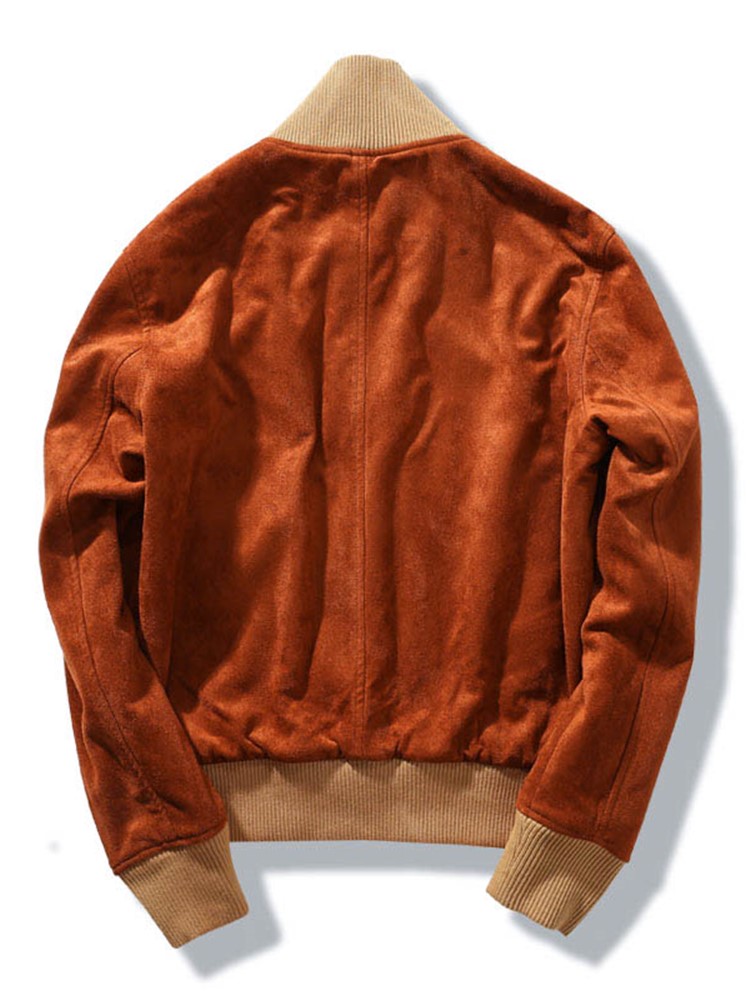 纯色的小翻领夹克,由绒面磨砂质感的麂皮绒打造衣身,哑光的色泽让衣服更显质感,隐约透出怀旧复古的腔调。衣服以金属拉链和立体口袋加持,塑造挺括的机车风版型,彰显帅气硬朗魅力。短款剪裁也是亮点之一,将腿长比例拉伸,展现大长腿身材。
