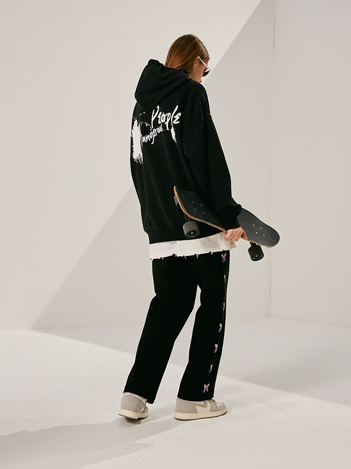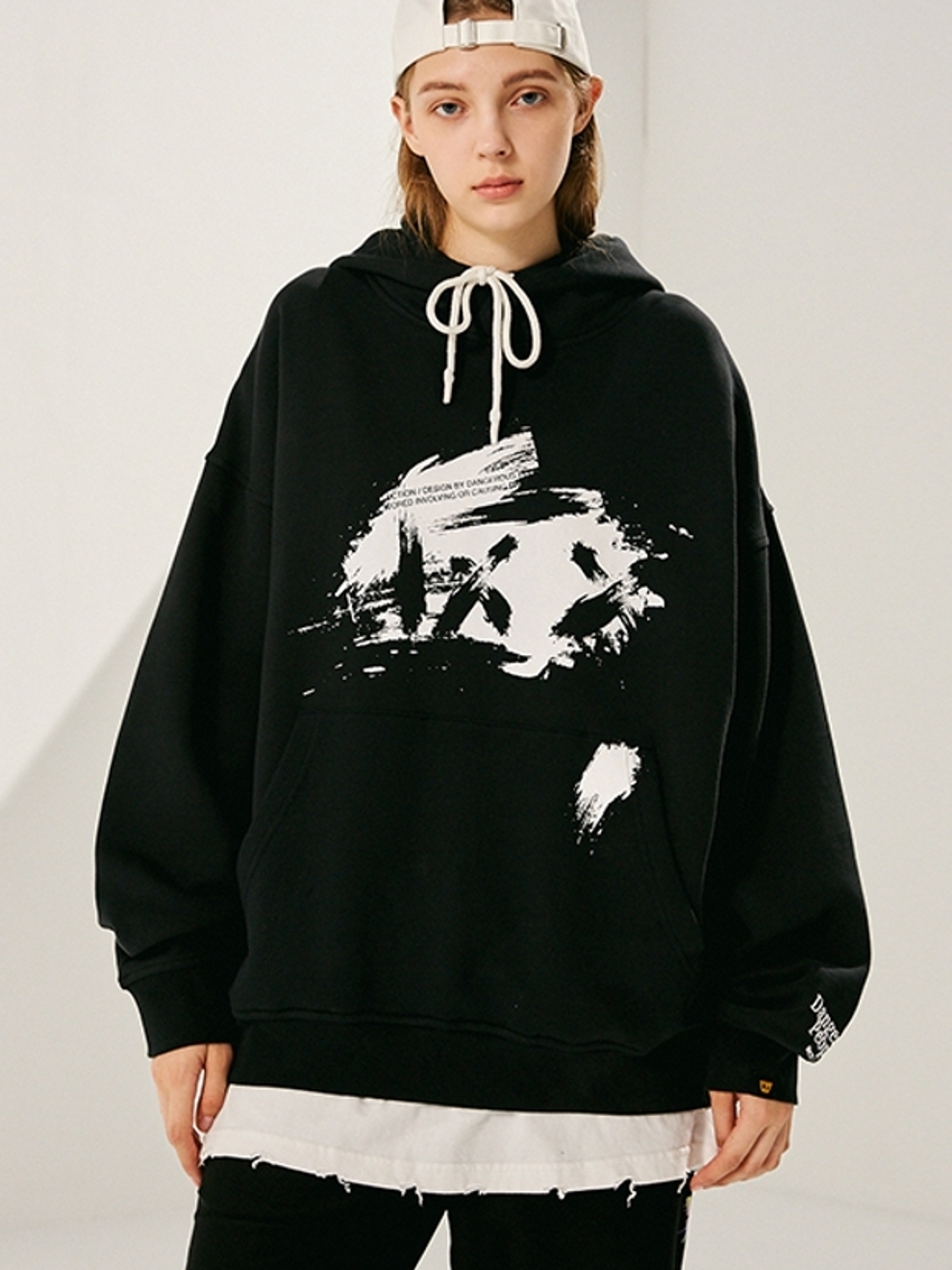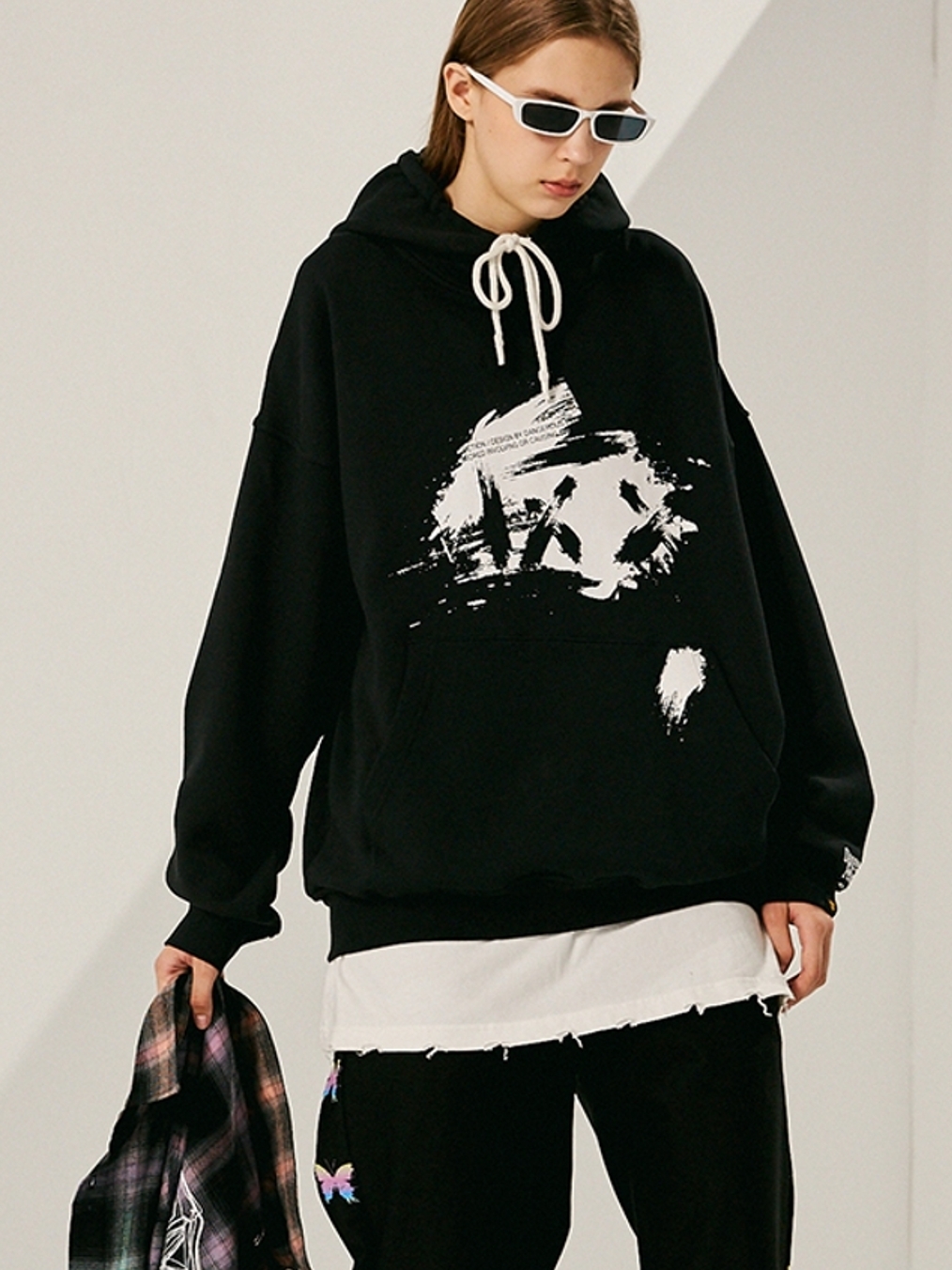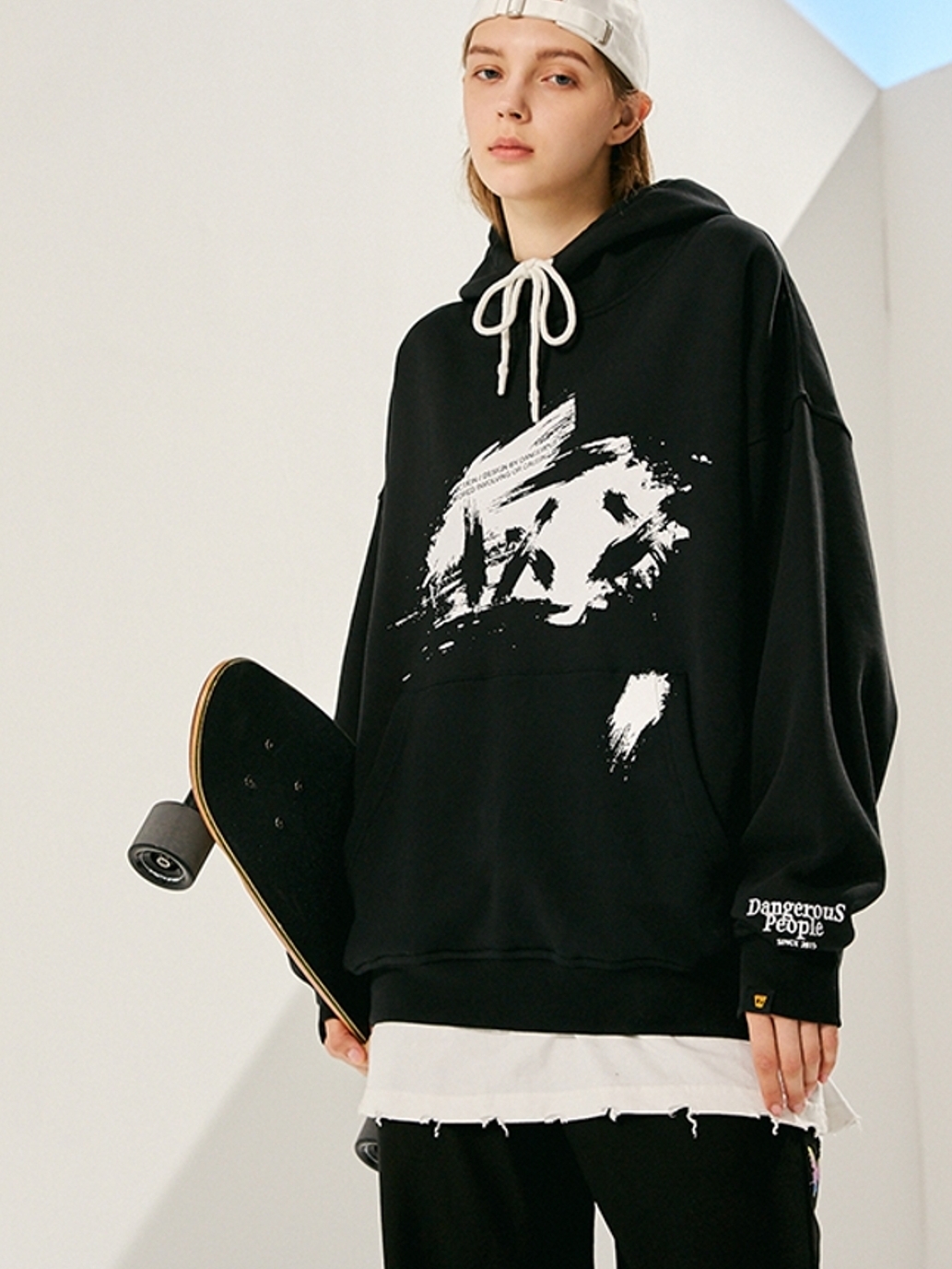 泼墨的印花设计很个性也很潮流,背后是字母印花,连帽的版型,修身效果很好,优质的面料,贴心满满。