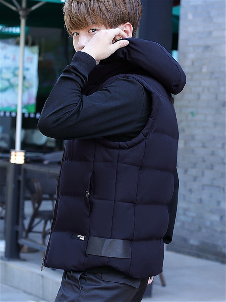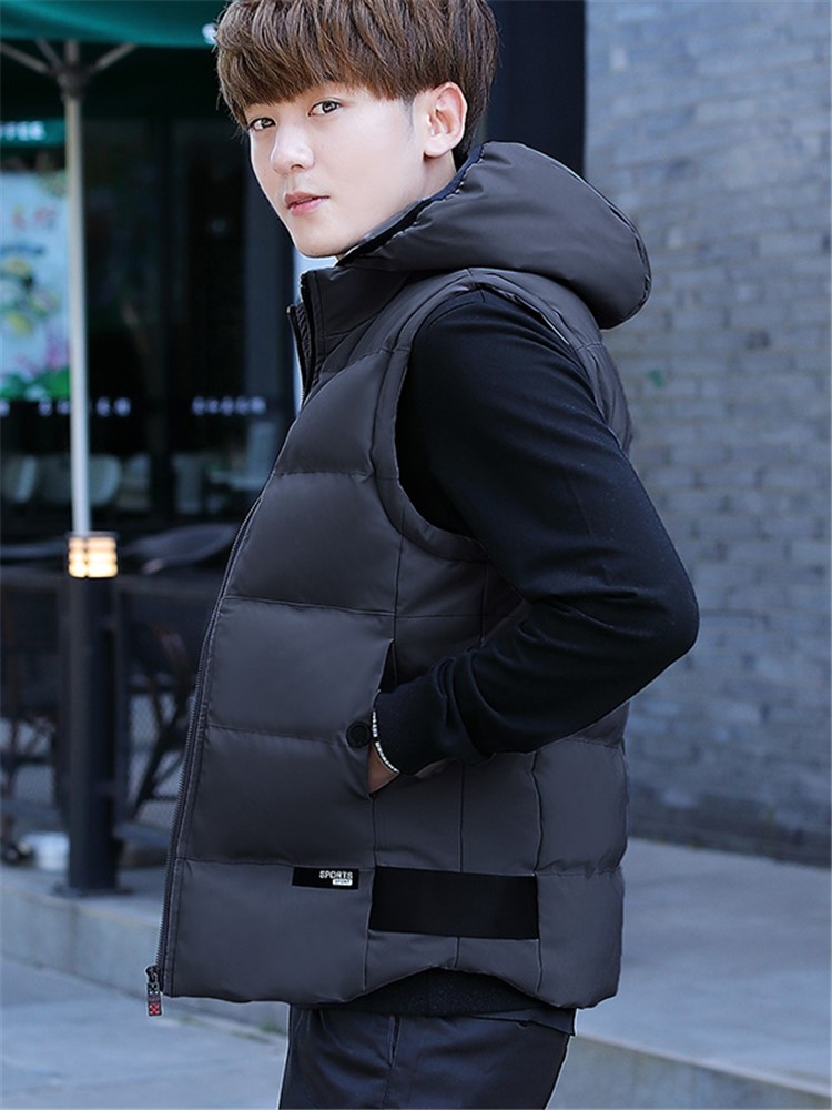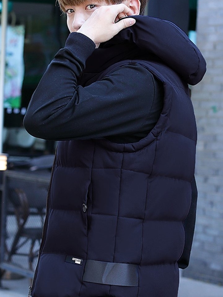 宽松加厚短款羽绒马甲,加厚设计,保暖性好,宽松设计,包容性强,穿着舒适,可以内搭一件条纹高领宽松落肩袖针织衫,下身穿搭黑色大裙摆连衣裙,脚穿黑色皮鞋,时尚洋气,清新减龄。