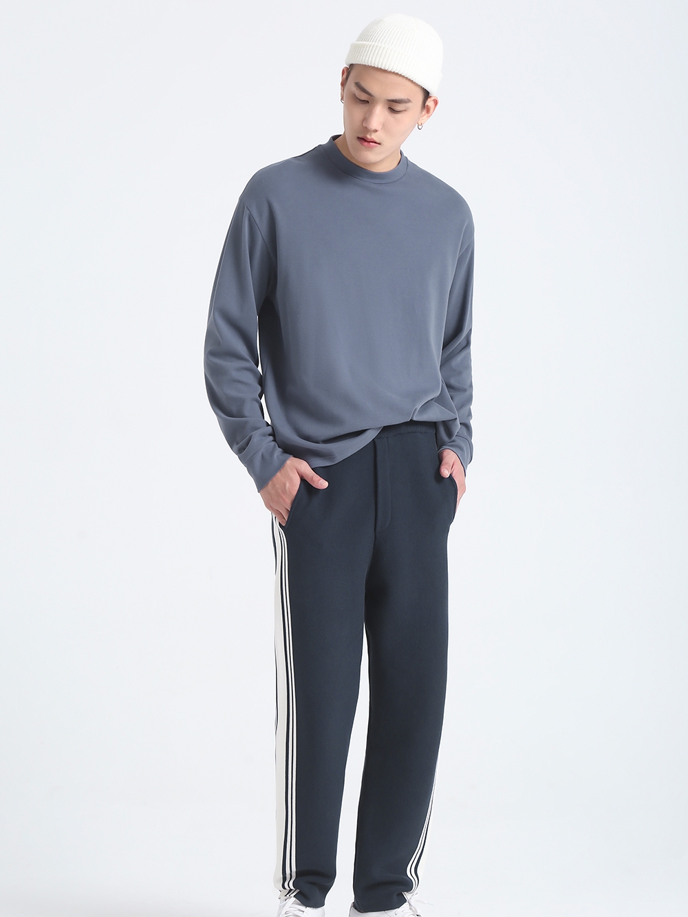 32支双纱针织棉线进行丝光与烧毛处理,表面平整光洁,手感糯实有厚度,具有筋骨感,能够在平顺的同时挺括有垂度,穿着更显有型。