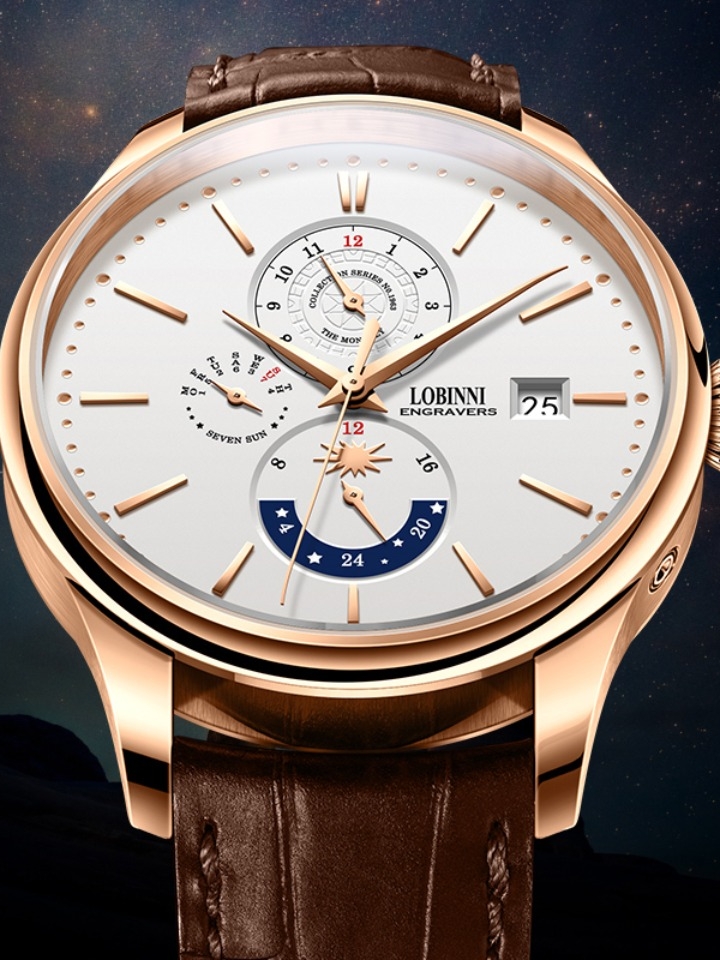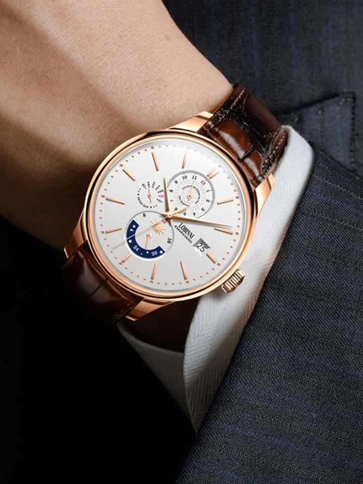 这款男士多功能防水全自动机械手表,精细的做工加上多工能汇聚在表盘上,不仅不觉得繁琐,反而使得表盘看起来气势十足;由于功能众多。