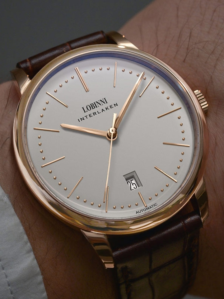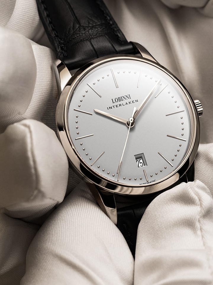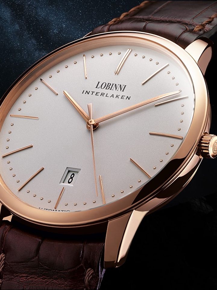 这款LOBINNI/罗宾尼腕表,经典复古风格,表壳材质为精钢,镜面材质为人工合成蓝宝石,表盘厚度为9.8mm。