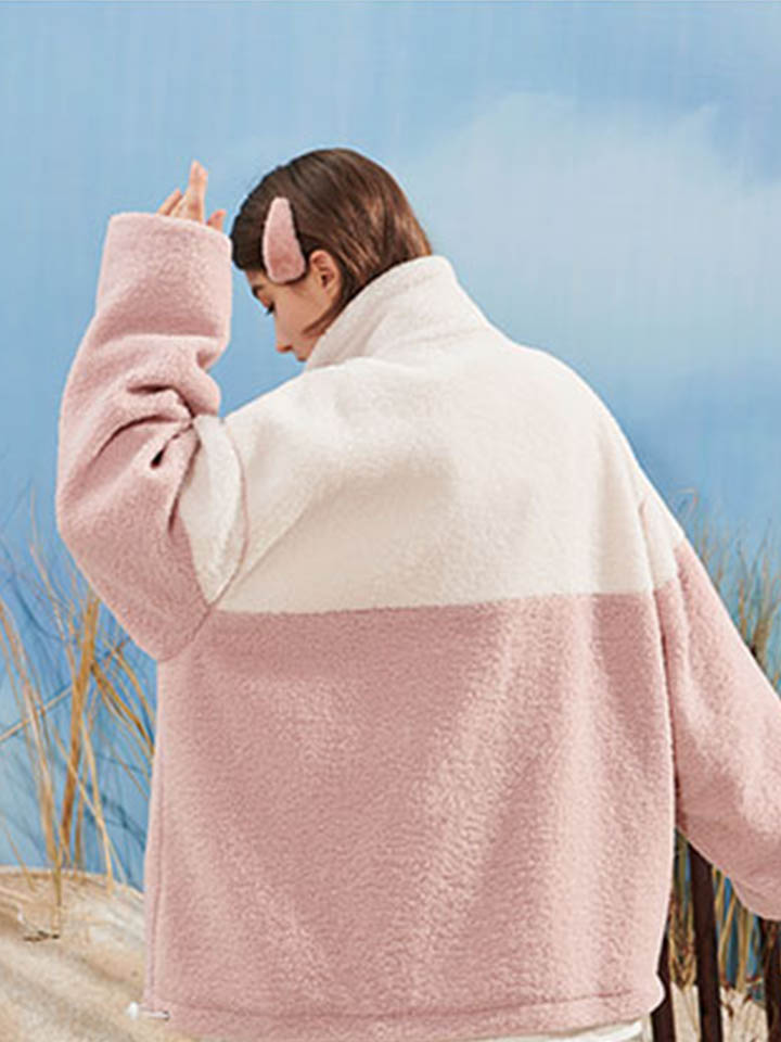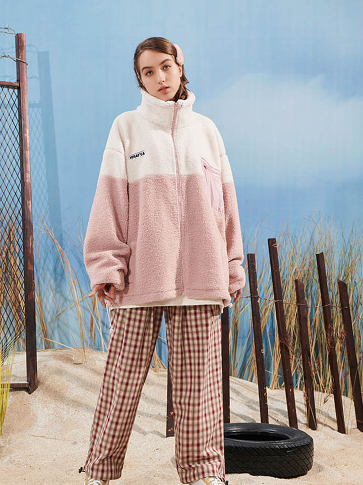 这款夹克外套选用了甄选的羊羔绒面料,保暖又舒适,厚实又轻盈的羊羔绒穿上身更显得慵懒。