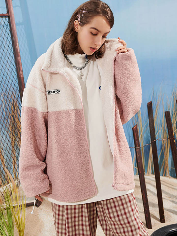 羊羔绒加厚外套,简约的翻领设计,挺括有型,翻领撞色羊羔绒别具匠心,两侧插袋设计,立体简约,实用美观,印花设计,打造属于你的潮范。