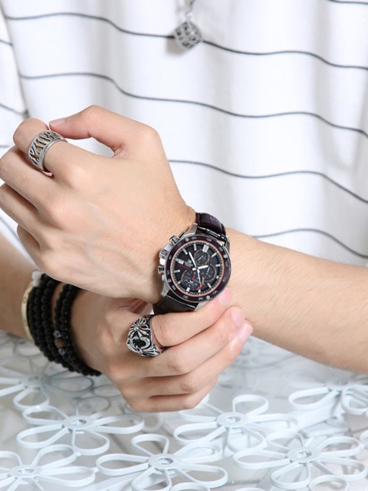 矿物强化玻璃镜面,耐磨耐划更结实。石英太阳能机芯,计时更加精准。运动设计风格,给你动感与美的结合。