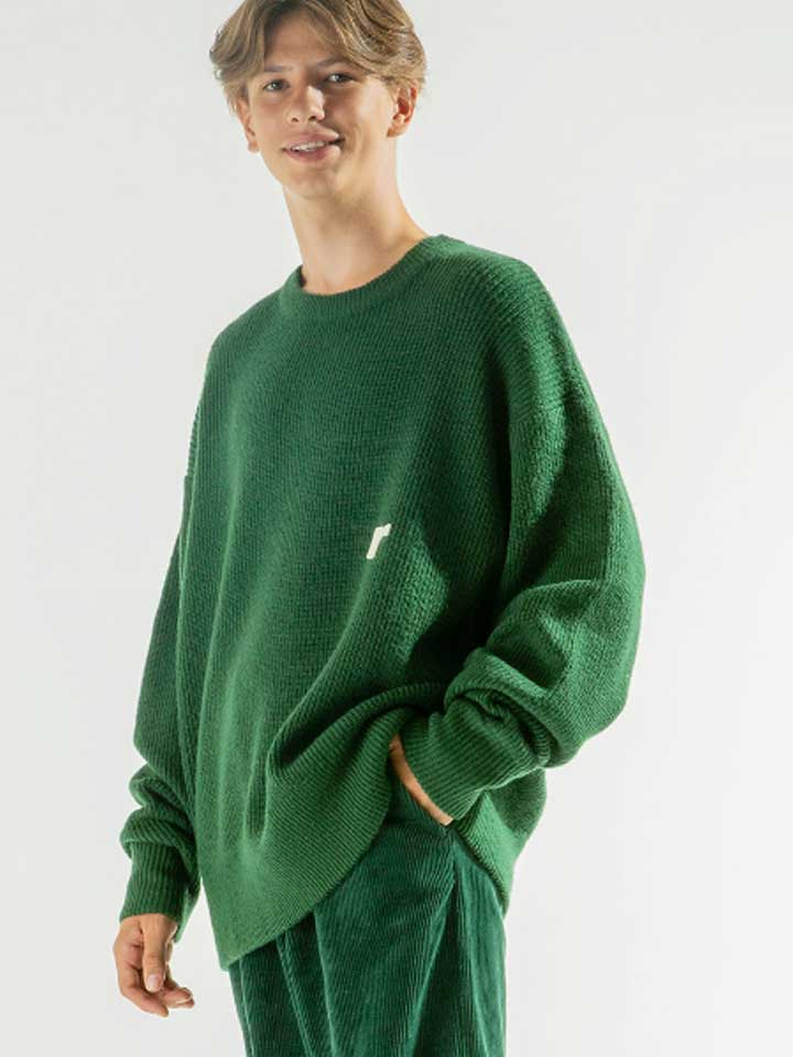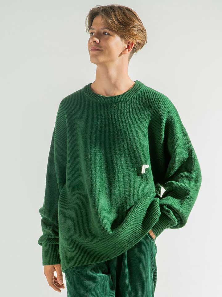 RANDOMEVENT带来的休闲毛衣,大面积的绿色,尽显复古感。