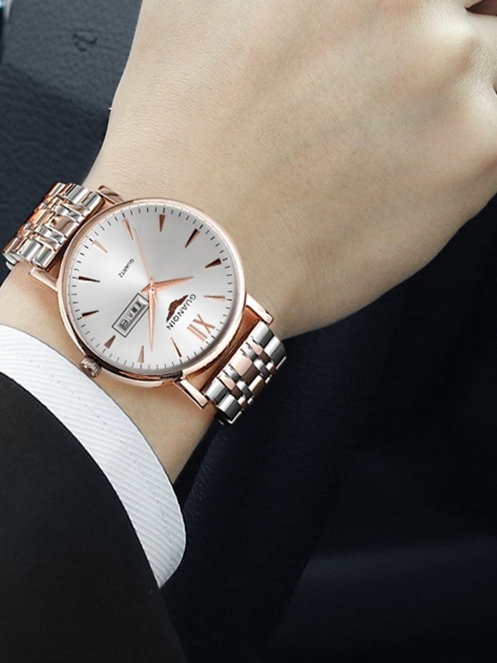有一种品位叫时尚,走在时尚手表设计的前端,它更像一件工艺品,给您带来不一样的时间概念。极之优雅,品位永恒,精钢材质赋予它尊贵品质,精美之感。