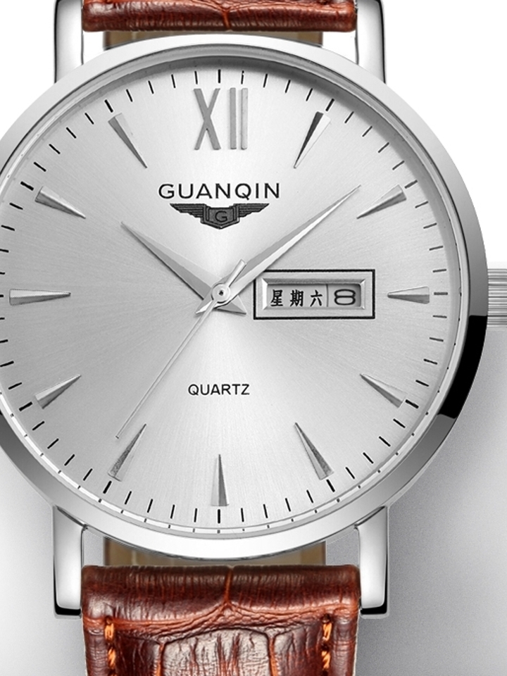 简约的大表盘设计,商务气息浓厚。独特的秒盘取代了秒针,更有层次感和设计感。真皮的表带,柔软舒适,触感极佳。