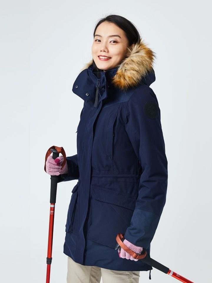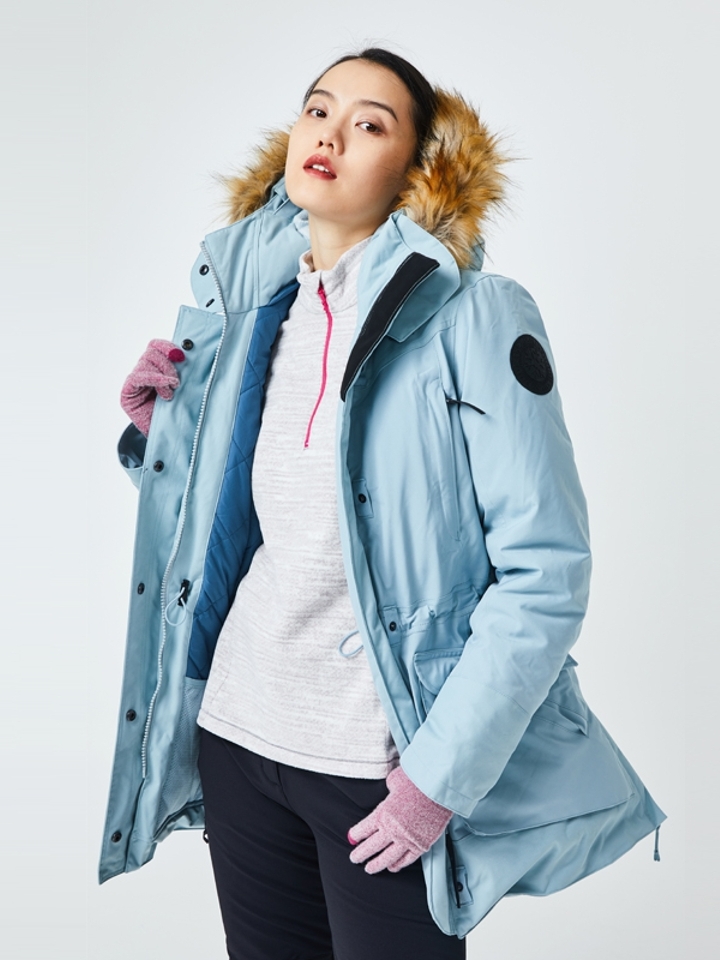 风帽可用弹性抽拉绳和紧线扣调节深度,两个方便拿取的网眼内口袋,两个带防水灵灵的插手口袋。袖子可以魔术贴调节,塑料扣紧抽拉调节绳可以增加保暖性。亲水薄膜,防止服装内水滴凝结。