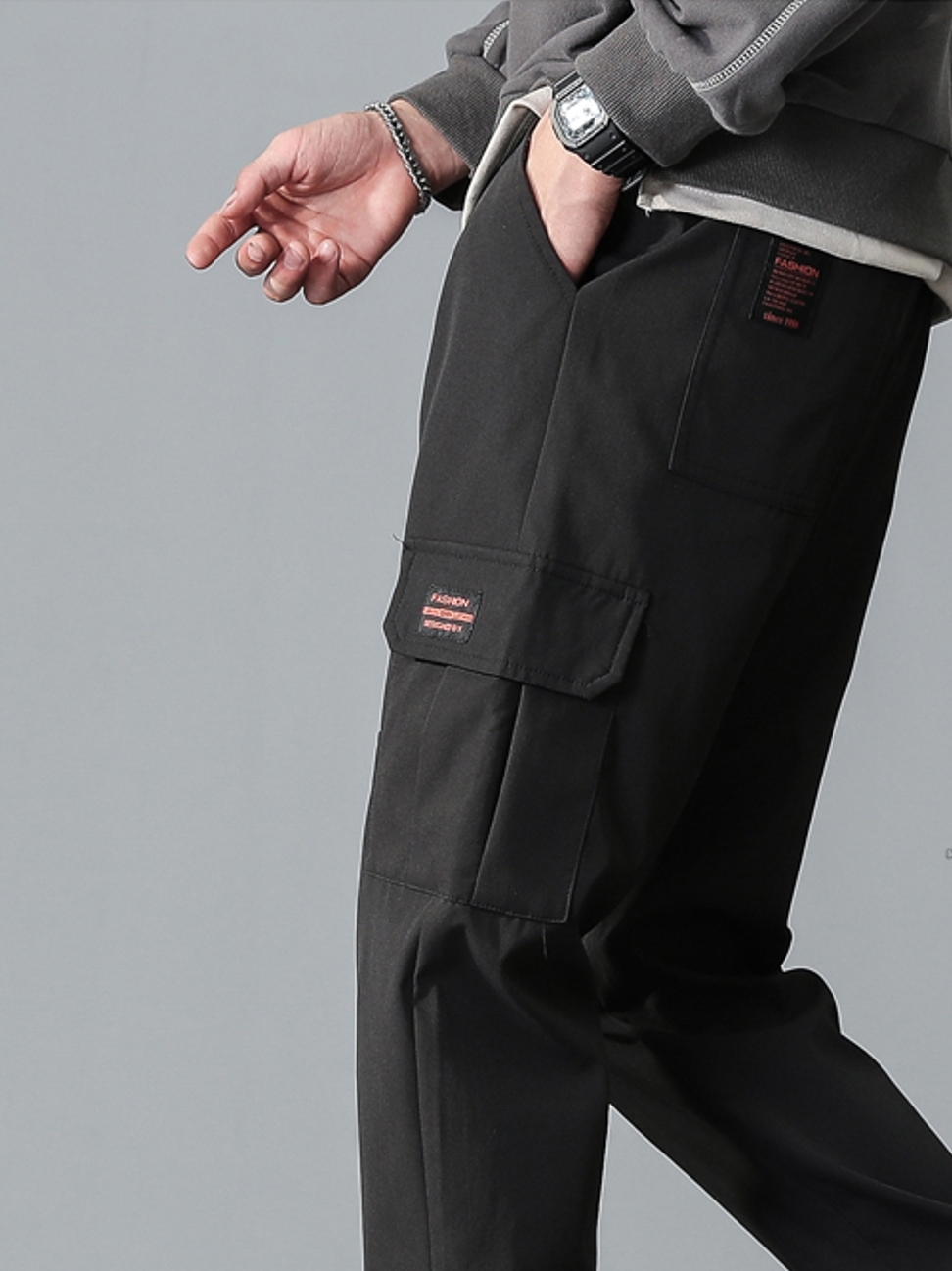 选用纯棉面料,亲肤舒适,透气柔软,吸湿排汗且易清理。斜插口袋设计,美观实用,方便置物。裤腿两侧工装大口袋设计,潮流时尚,又很实用。门襟拉链设计,顺滑耐拉,不卡链。
